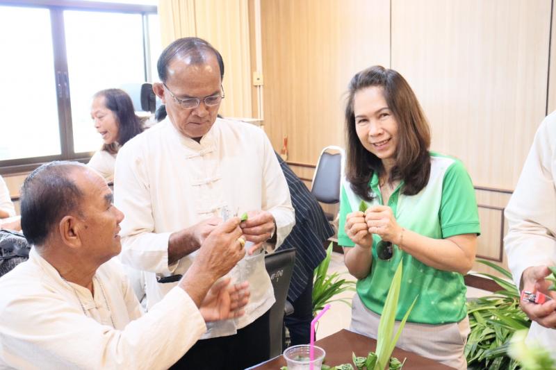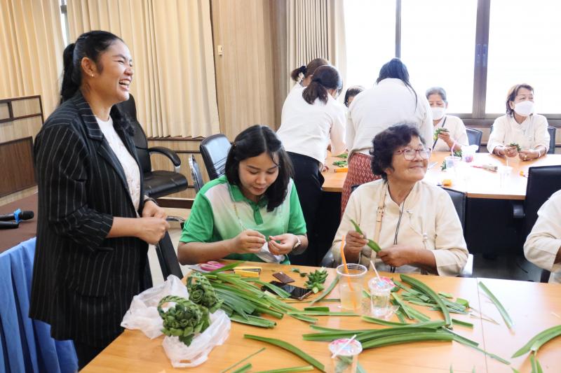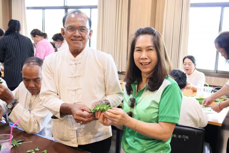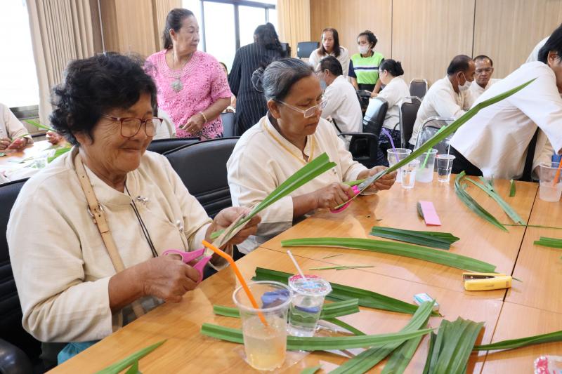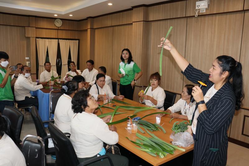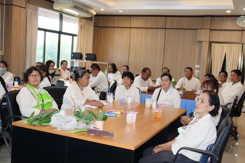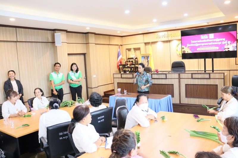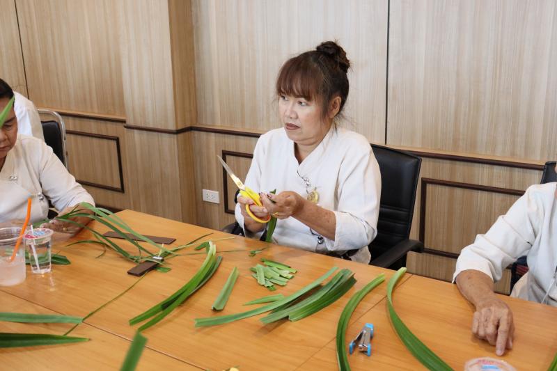 2. รายวิชา "การส่งเสริมอาชีพและการจัดหางานให้เหมาะสมกับวัย" และกิจกรรมแลกเปลี่ยนรู้โรงเรียนผู้สูงอายุตำบลท่าคล้อ โดยมีนางจันที สุทธิประภา ผู้อำนวยการกองสวัสดิการสังคม อบต.ท่าคล้อ เป็นวิทยากรบรรยาย และฝึกปฏิบัติการพับใบเตยหอม ณ ห้องประชุมชั้น 2 สำนักงานเทศบาลตำบลตะกุด