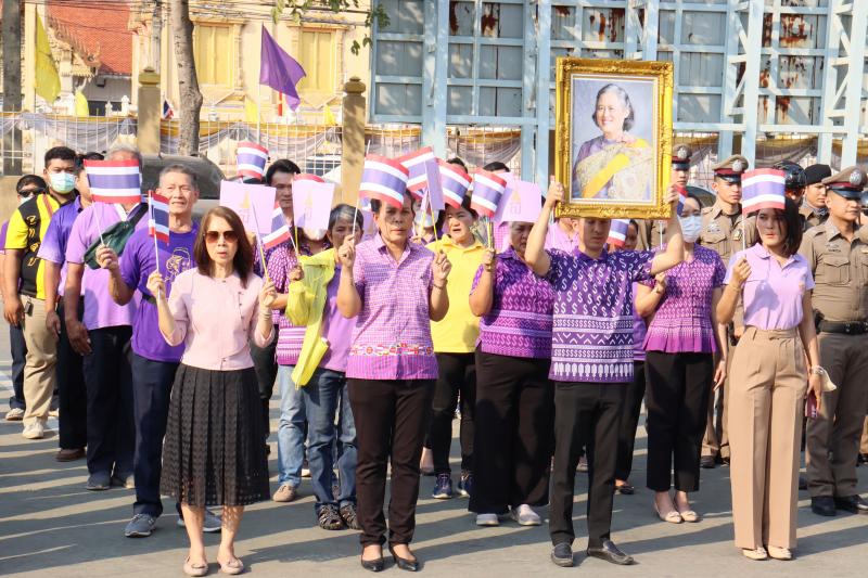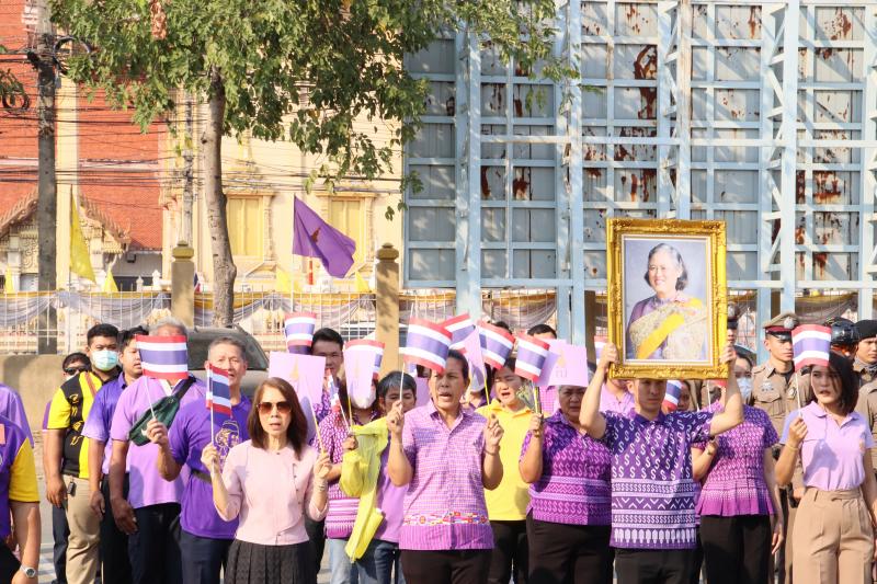 โดยมี นายบัญชา เชาวรินทร์ ผู้ว่าราชการจังหวัดสระบุรี เป็นประธานในพิธีฯ พร้อมด้วยคณะผู้บริหาร หัวหน้าส่วนราชการ ข้าราชการ เจ้าหน้าที่ กำนัน ผู้ใหญ่บ้าน ผู้นำท้องถิ่น และพสกนิกรชาวจังหวัดสระบุรีทุกหมู่เหล่า ประมาณ 1,000 คน แต่งกายชุดสีม่วงและสีเหลือง แสดงพลังปกป้องและถวายกำลังใจ สมเด็จพระกนิษฐาธิราชเจ้า กรมสมเด็จพระเทพรัตนราชสุดาฯ สยามบรมราชกุมารี ณ บริเวณหน้าที่ว่าการอำเภอเมืองสระบุรี