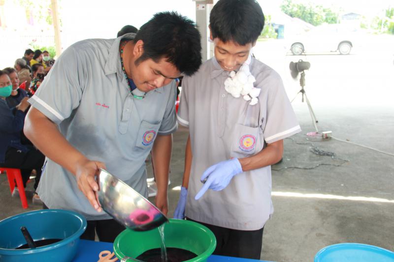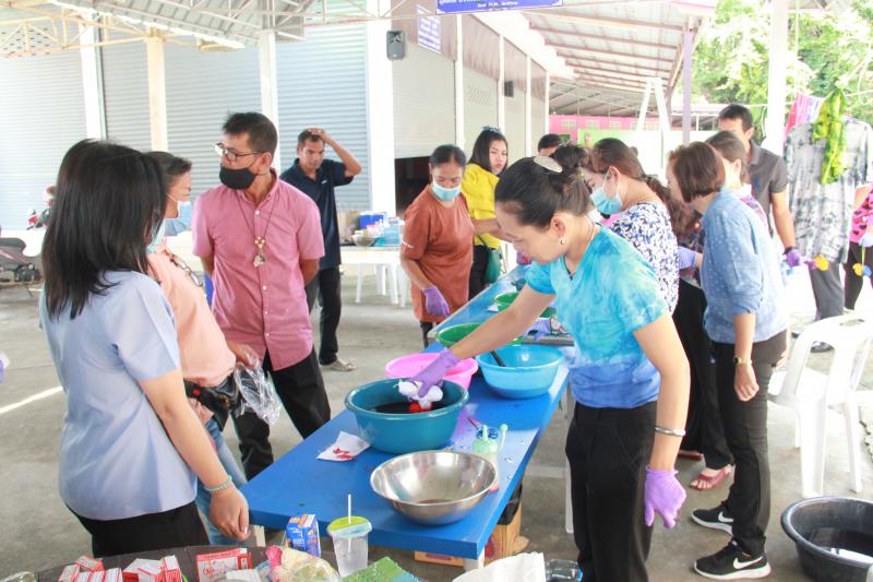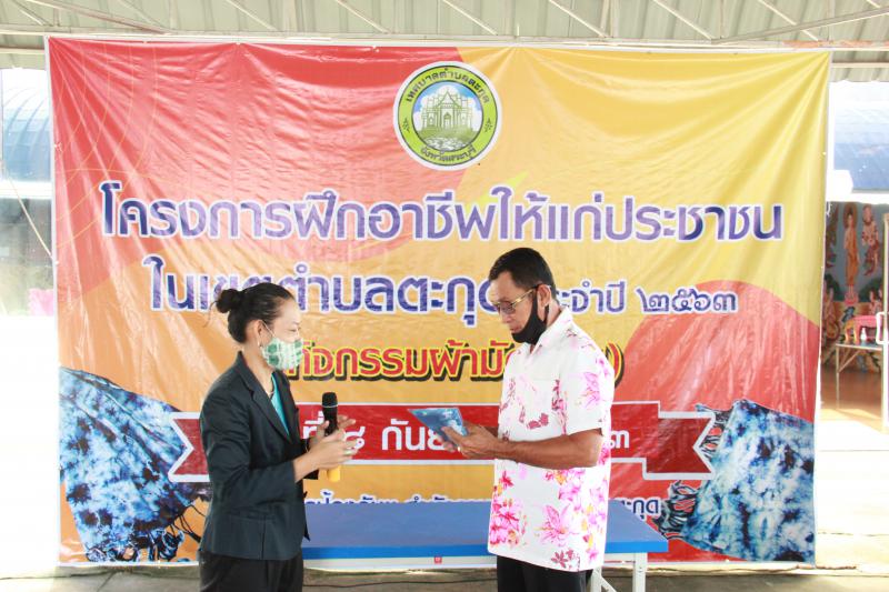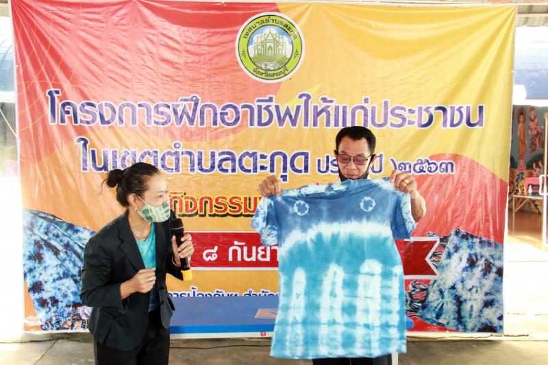 รายละเอียด : วันอังคาร 8 กันยายน ๒๕๖๓ เวลา 09.00 น. นายสมศักดิ์ พวงกุหลาบ นายกเทศมนตรีตำบลตะกุด เป็นประธานพิธีเปิด “โครงการฝึกอาชีพให้แก่ประชาชนในเขตตำบลตะกุด” ประจำปี 2563 (กิจกรรมผ้ามัดย้อมเสื้อยืด, มัดย้อมผ้าเช็ดหน้า) ณ ศาลาการเปรียญวัดบ้านกล้วย หมู่ที่ 5 ตำบลตะกุด พร้อมด้วยคณะผู้บริหารเทศบาล พนักงานเทศบาล ลูกจ้างประจำ พนักงานจ้าง ผู้นำชุมชน ผู้ใหญ่บ้านหมู่ที่ 1-6 และกลุ่ม อสม. เพื่อส่งเสริมความรู้และทักษะด้านอาชีพให้แก่แม่บ้าน สตรีและประชาชนที่สนใจในตำบลตะกุด และสร้างโอกาสและทางเลือกในการประกอบอาชีพเป็นการเพิ่มรายได้และลดรายจ่ายในครัวเรือน โดยมีกลุ่มเป้าหมายและส่งเสริมอาชีพให้กับกลุ่ม อสม. กลุ่มชมรมผู้สูงอายุ กลุ่มเยาวชน และผู้สนใจทั่วไป จำนวน 50 คน ทั้งนี้ ได้รับความอนุเคราะห์ จาก นางรัตติกร จันทมาศ แผนกวิชาการออกแบบ จากวิทยาลัยอาชีวศึกษาสระบุรี บรรยายและให้ความรู้เบื้องต้นในการทำผ้ามัดย้อม และขั้นตอน วิธีการย้อมผ้า การออกแบบลายผ้าและเทคนิคการทำลวดลายบนผ้า