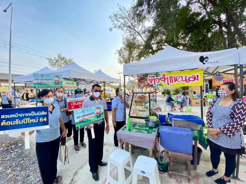 กิจกรรมการรณรงค์ สวมใส่หน้ากากอนามัย ครบ 100% ทั้งขณะออกจากเคหะสถาน และแม้กระทั่งการมาจับจ่ายใช้สอยที่ตลาด