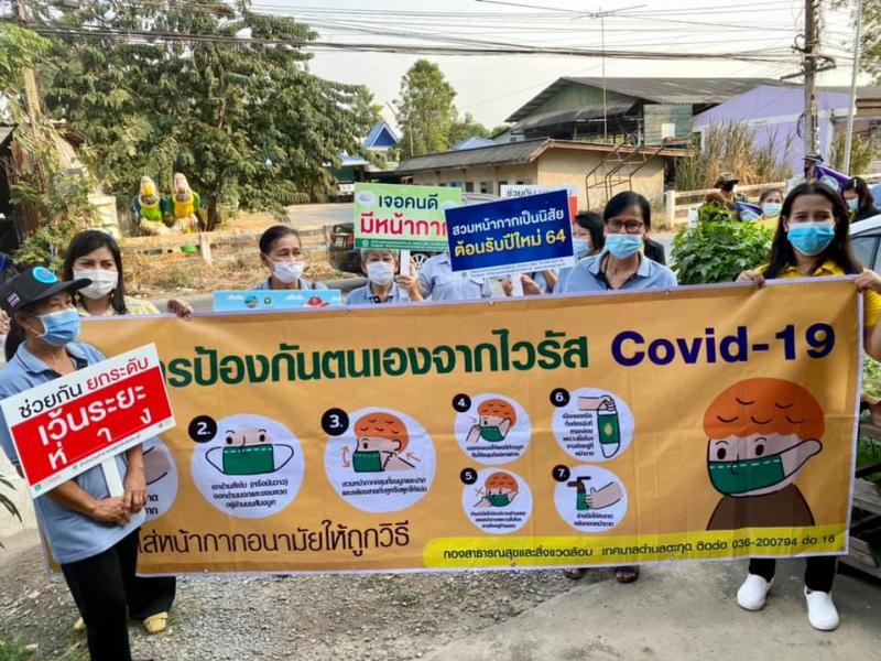รายละเอียด : วันอังคารที่ 29 ธันวาคม 2563 นายสมศักดิ์ พวงกุหลาบ นายกเทศมนตรีตำบลตะกุด ปลัดเทศบาล พนักงานเทศบาล พนักงานจ้าง พร้อมด้วย โรงพยาบาลส่งเสริมสุขภาพตำบลตะกุด และอาสาสมัครสาธารณสุขตำบลตะกุด ร่วมกันรณรงค์ มาตรการการควบคุมป้องกันการแพร่ระบาดของโรคไวรัสโคโรนา 2019 ตามคำสั่งจังหวัดสระบุรี ที่ 1877/2563 ลงวันที่ 28 ธันวาคม 2563 ในเรื่อง มาตรการควบคุมพื้นที่ และกำกับดูแลสถานการณ์การแพร่ระบาดของโรคไวรัสโคโรนา 2019 ในพื้นที่จังหวัดสระบุรี โดยมีกิจกรรมการรณรงค์ สวมใส่หน้ากากอนามัย ครบ 100% ทั้งขณะออกจากเคหะสถาน และแม้กระทั่งการมาจับจ่ายใช้สอยที่ตลาด หรือห้างสรรพสินค้า และให้คำแนะนำการปฏิบัติตนตามมาตรการอย่างเคร่งครัด เพื่อเป็นการป้องกันตนเองจากการติดเชื้อฯ “ไม่ประมาท การ์ดอย่าตก” สวมใส่หน้ากากอนามัยทุกครั้งที่ออกจากเคหะสถาน ด้วยความปรารถนาดีจาก เทศบาลตำบลตะกุด