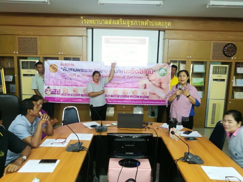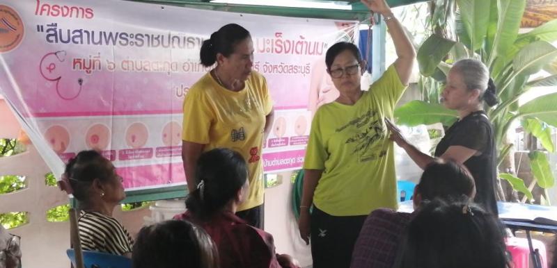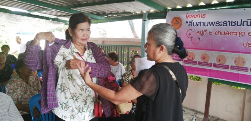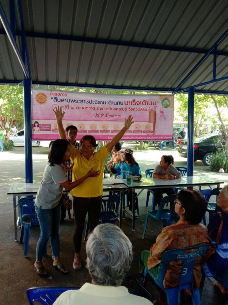 รายละเอียด : โครงการ“สืบสานพระราชปณิธาน ต้านภัยมะเร็งเต้านม” ประจำปี 2562 โดยมีวัตถุประสงค์เพื่อให้ประชาชนมีความรู้เรื่องมะเร็งเต้านมอย่างถูกต้อง สตรีอายุ 30 – 60 ปี ได้รับการคัดกรองมะเร็งเต้านม ไม่น้อยกว่าร้อยละ 80 และสามารถตรวจมะเร็งเต้านมด้วยตนเองได้อย่างถูกวิธี