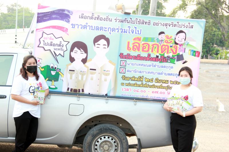 รายละเอียด : วันพฤหัสบดีที่ 18 มีนาคม พ.ศ. 2564 เวลา 15.30 น. เทศบาลตำบลตะกุด อำเภอเมืองสระบุรี จังหวัดสระบุรี นำโดย นายศราวุธ แป้นขำ ปลัดเทศบาลตำบลตะกุด พร้อมเจ้าหน้าที่ ร่วมกันจัดกิจกรรมรณรงค์ประชาสัมพันธ์การเลือกตั้งเทศบาล Big Day เพื่อเป็นการเชิญชวนผู้มีสิทธิเลือกตั้ง ให้ไปใช้สิทธิเลือกตั้งสมาชิกสภาเทศบาลตำบลตะกุด และนายกเทศมนตรีตำบลตะกุด ในวันอาทิตย์ที่ 28 มีนาคม 2564 เวลา 08.00 - 17.00 น. ณ หน่วยเลือกตั้งที่ท่านมีรายชื่ออยู่