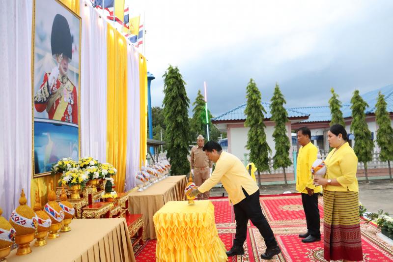 นายกเทศมนตรีตำบลตะกุด ได้จัดพิธีถวายเครื่องราชสักการะ และจุดเทียนถวายพระพรชัยมงคล เนื่องในโอกาสวันเฉลิมพระชนมพรรษาพระบาทสมเด็จพระเจ้าอยู่หัวฯ ประจำปี 2568 ณ บริเวณสำนักงานเทศบาลตำบลตะกุด
