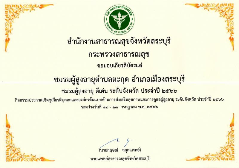 ✨✨ขอมอบเกียรติบัตรแด่ ชมรมผู้สูงอายุตำบลตะกุด อำเภอเมืองสระบุรี จังหวัดสระบุรี ????????????????