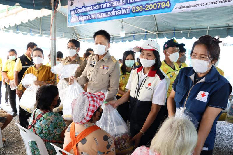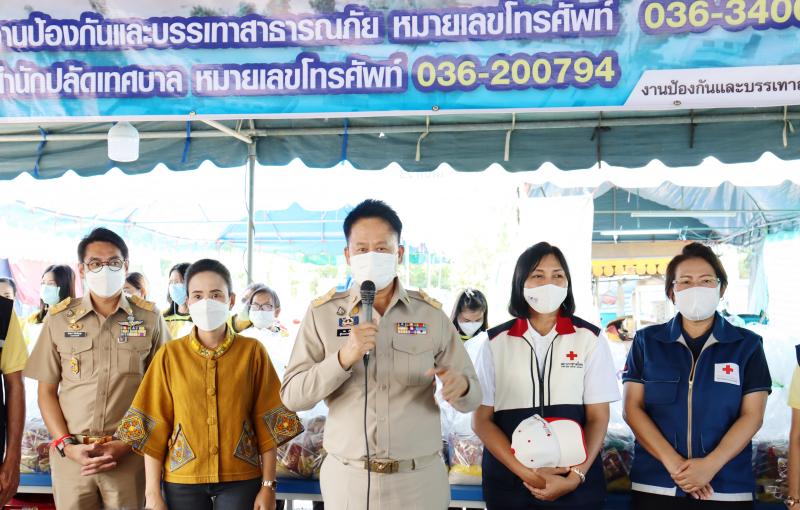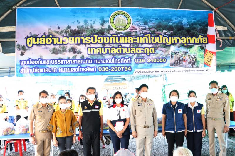 ผู้ว่าราชการจังหวัดสระบุรี มามอบถุงยังชีพให้ผู้ประสบอุทกภัยน้ำท่วม ตำบลตะกุด