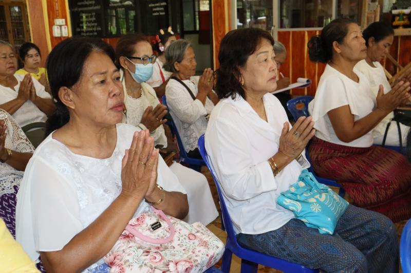 กิจกรรมการเรียนการสอนของโรงเรียนผู้สูงอายุเทศบาลตำบลตะกุด วิชาที่ 1 "วิชาพระพุทธศาสนาและการนำหลักทางพระพุทธศาสนามาใช้ในชีวิตประจำวัน"
