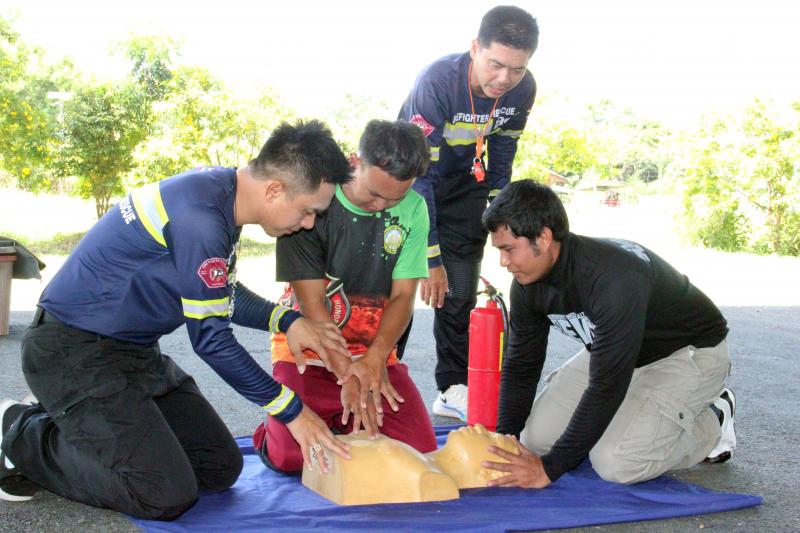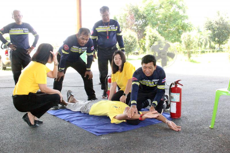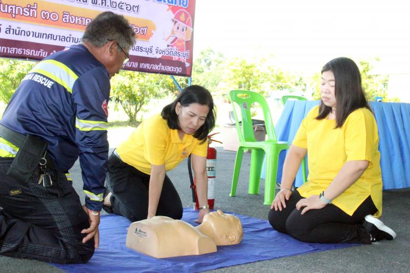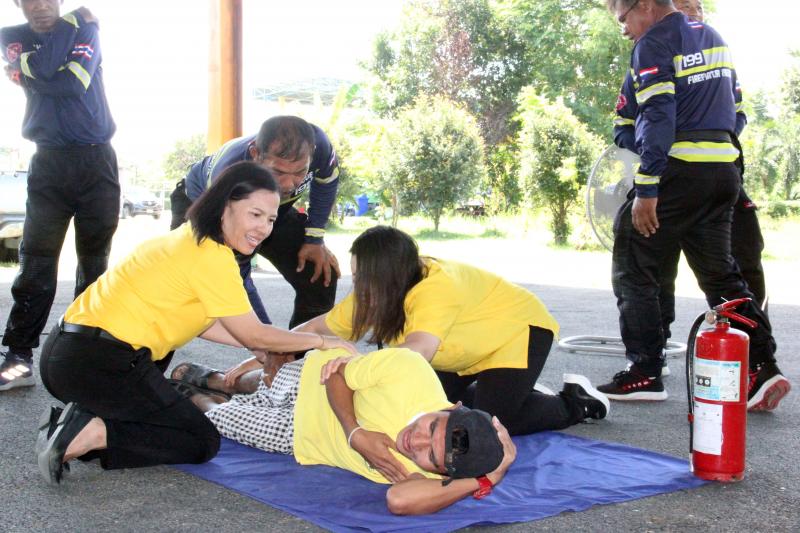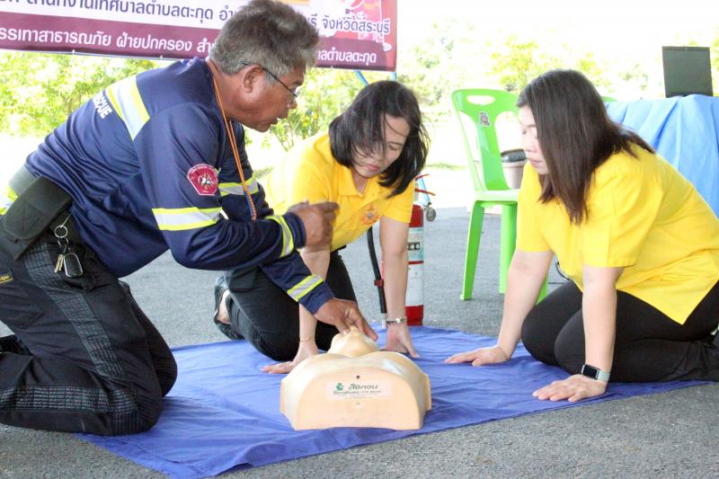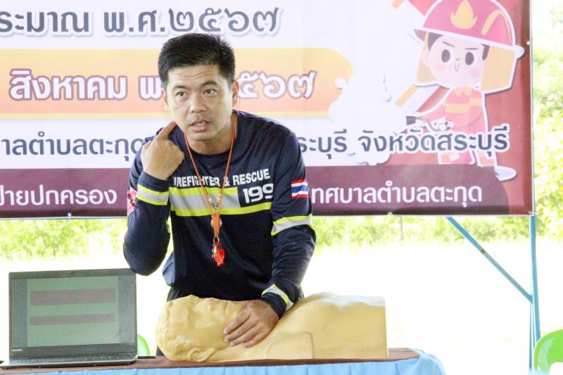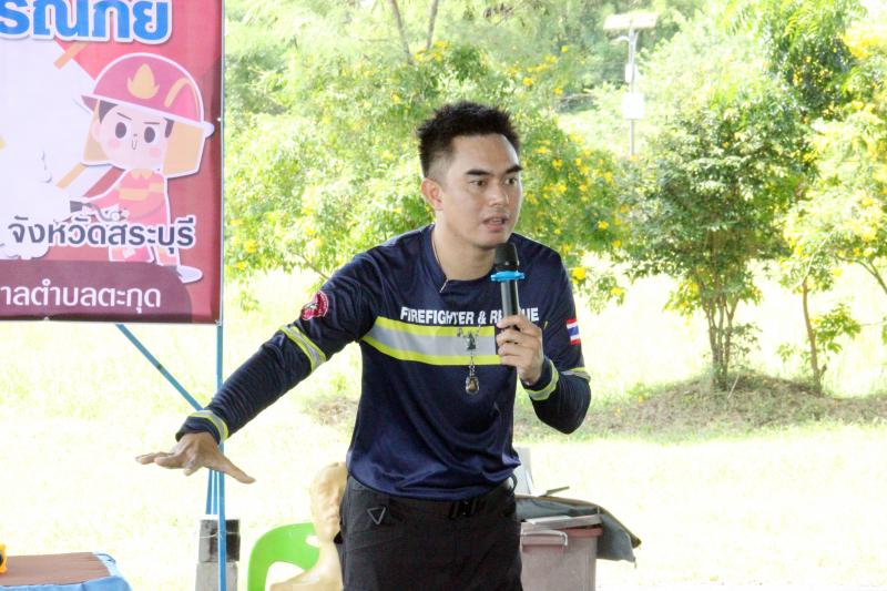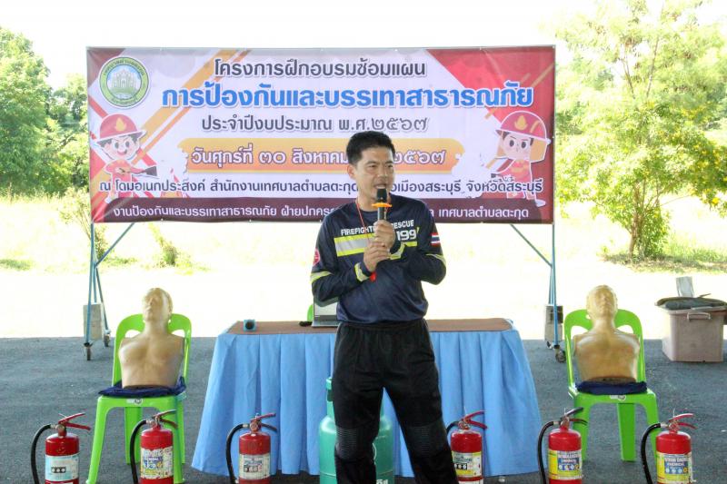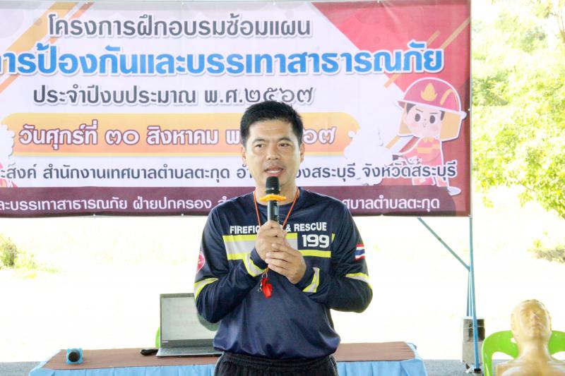 รายละเอียด : วันศุกร์ที่ 30 สิงหาคม 2567 เวลา 09.00 น. เทศบาลตำบลตะกุด นำโดย นางสาวสิริกัลยา เนตรอินทร์ นายกเทศมนตรีตำบลตะกุด เป็นประธานเปิดโครงการฝึกอบรมซ้อมแผนการป้องกันและบรรเทาสาธารณภัย ประจำปีงบประมาณ 2567 ณ โดมอเนกประสงค์เทศบาลตำบลตะกุด พร้อมด้วย คณะผู้บริหารเทศบาล ประธานสภาเทศบาล สมาชิกสภาเทศบาล เขต 1 , เขต 2 ปลัดเทศบาล หัวหน้าส่วนราชการ เจ้าหน้าที่เทศบาล และเจ้าหน้าที่ป้องกันฯ ของเทศบาลตำบลตะกุด วัตถุประสงค์เพื่อให้ผู้เข้าร่วมโครงการมีทักษะ มีความรู้ในการช่วยชีวิตขั้นพื้นฐานและปฐมพยาบาลเบื้องต้นอย่างถูกต้อง การจัดโครงการในครั้งนี้ เทศบาลตำบลตะกุด ขอขอบคุณ นายกิตติศักดิ์ ธงวันเทียะ ตำแหน่ง หัวหน้าฝ่ายส่งเสริมการป้องกันฯ สำนักงานป้องกันฯจังหวัดสระบุรี , นายณัฐวุฒิ เอี่ยมนิล ตำแหน่ง เจ้าพนักงานป้องกันฯ สังกัด เทศบาลตำบลวิหารแดง , นายเอกชัย คงสมใจ ตำแหน่ง เจ้าพนักงานป้องกันฯ สังกัด เทศบาลเมืองพระพุทธบาท ที่มาเป็นวิทยากรอบรมให้ความรู้เกี่ยวกับวิชาสาธารณภัยในพื้นที่และความปลอดภัยในสถานที่ทำงาน/การปฐมพยาบาลเบื้องต้นและการช่วยเหลือผู้ประสบเหตุอาหารติดที่ลำคอ การฟื้นคืนชีพ CPR ทฤษฎี/สาธิต/ฝึกปฏิบัติทฤษฎีการเกิดไฟ/ประเภทของไฟ/ประเภทของถังดับเพลิง/การดับเพลิง/จิตวิทยาต่อเหตุไฟไหม้