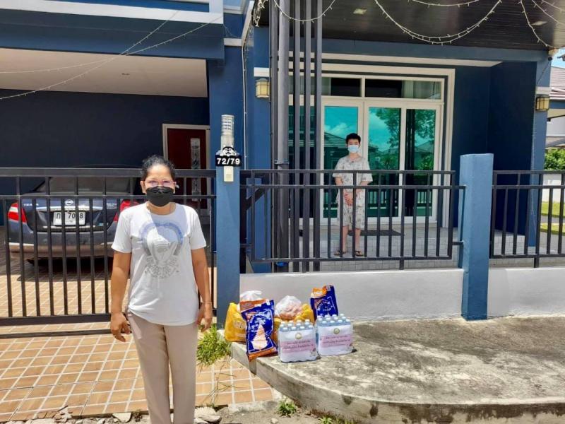 ส่งมอบถุงยังชีพสำหรับผู้กักกันตนเอง ณ ที่พักอาศัย(Home Quarantine)และผู้ป่วย Covid-19 รักษาตัวที่บ้าน (home isolation)ให้กับผู้นำหมู่บ้านและตัวแทน อสม. เพื่อส่งต่อไปยังผู้กันกันตน หมู่ที่ 2,4 และหมู่ 6 จำนวน 4 ครอบครัว