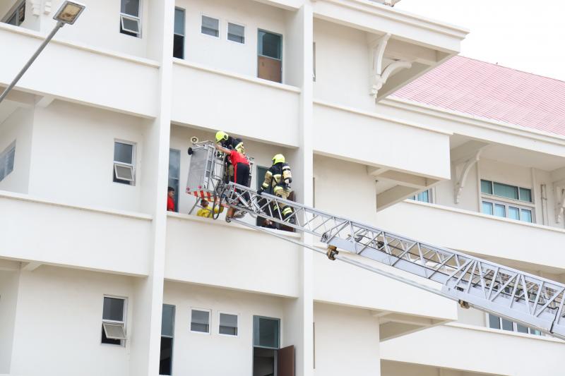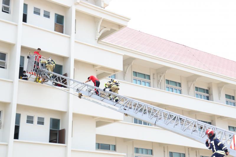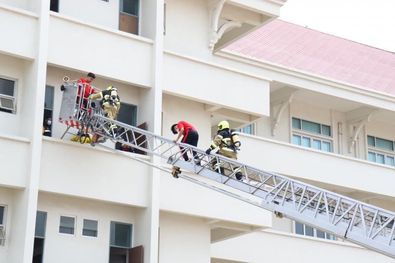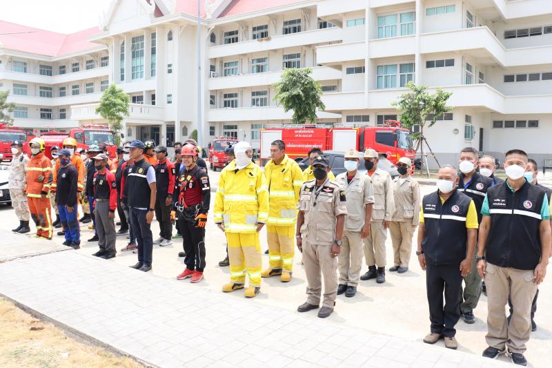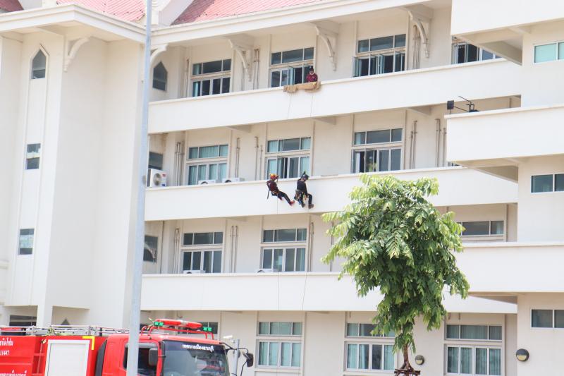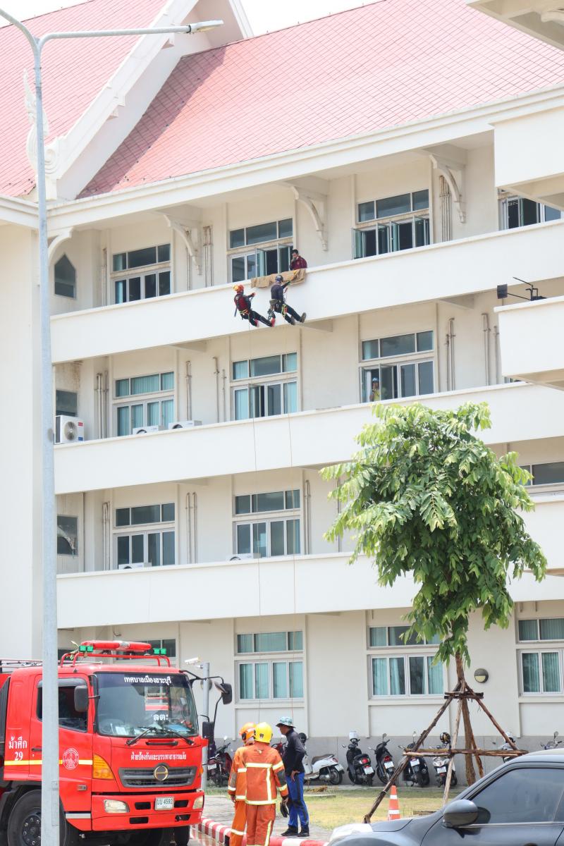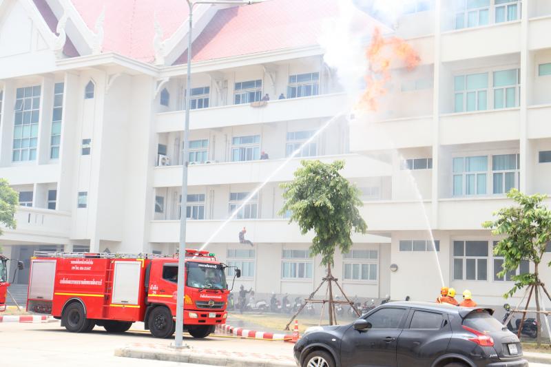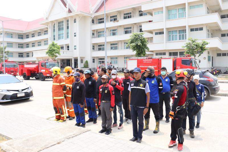จำลองสถานการณ์การป้องกันระงับอัคคีภัยและอพยพหนีไฟศาลากลางจังหวัดสระบุรี ปี 2566