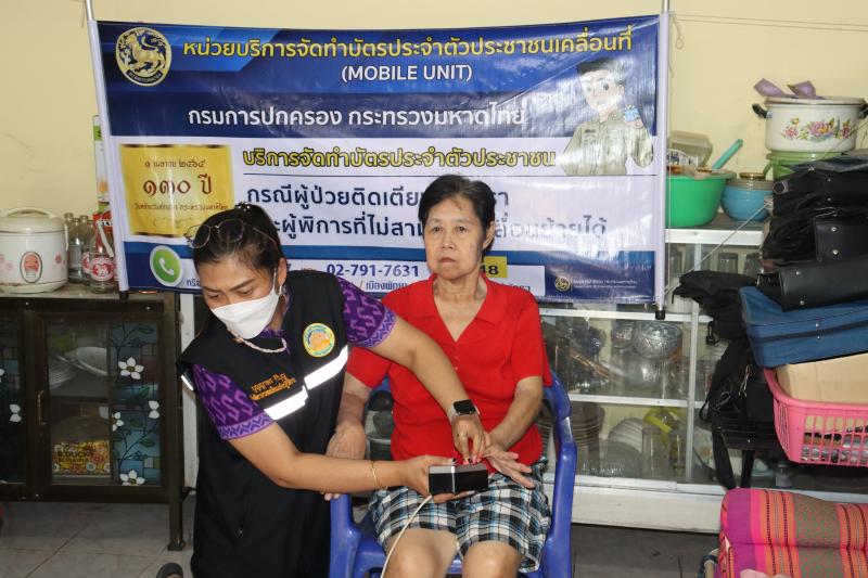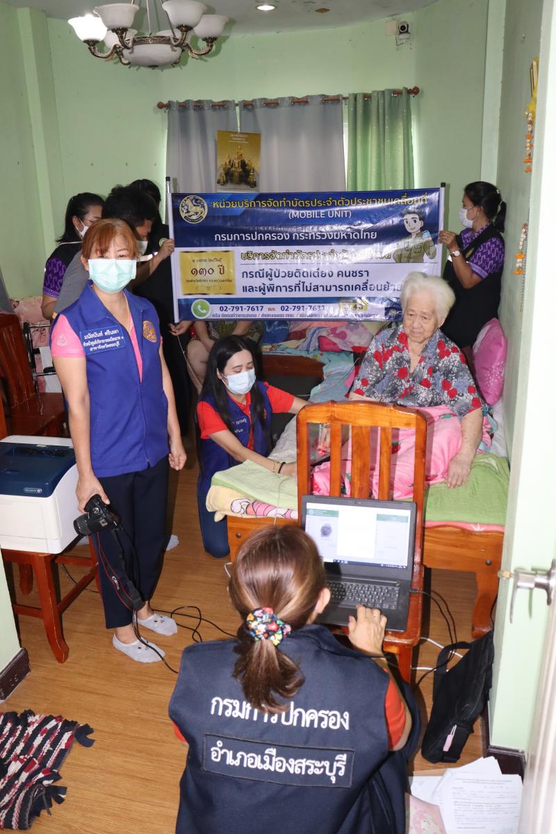 งานทะเบียน อำเภอเมืองสระบุรี ออกบริการจัดทำบัตรประจำตัวประชาชนให้แก่ผู้ป่วยติดเตียง คนชรา และผู้พิการที่ไม่สามารถเคลื่อนย้ายได้