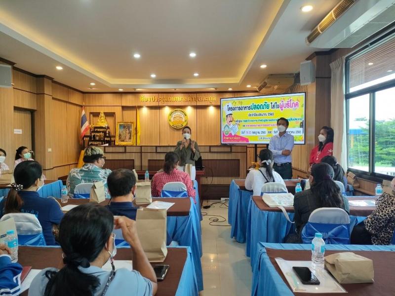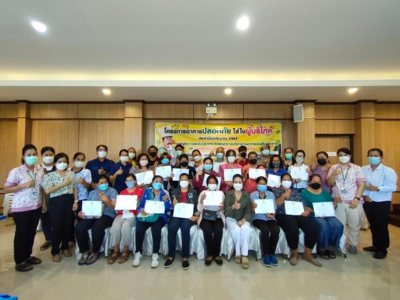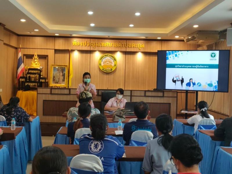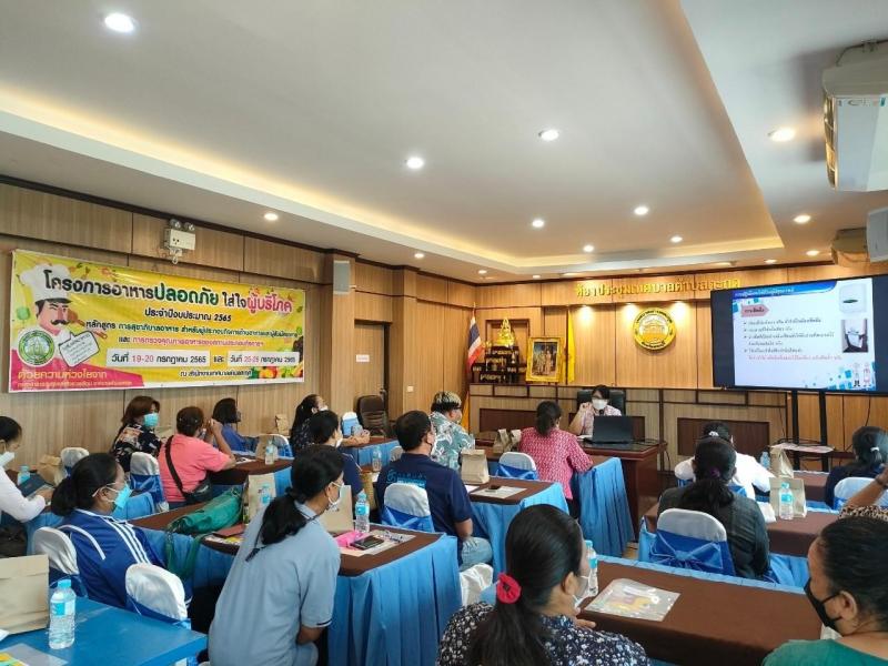 กิจกรรมอบรมหลักสูตรสุขาภิบาลอาหาร สำหรับผู้สัมผัสอาหาร ตามโครงการ “อาหารปลอดภัย ใส่ใจสุขภาพ” ประจำปีงบประมาณ 2565