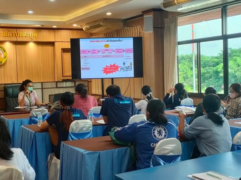 รายละเอียด : วันพุธที่ 20 กรกฎาคม 2565 เวลา 09.00 น. นางสาวสิริกัลยา เนตรอินทร์ มอบหมายให้กองสาธารณสุขและสิ่งแวดล้อมดำเนิน กิจกรรมอบรมหลักสูตรสุขาภิบาลอาหาร สำหรับผู้สัมผัสอาหาร ตามโครงการ “อาหารปลอดภัย ใส่ใจสุขภาพ” ประจำปีงบประมาณ 2565 โดยผู้ประกอบกิจการร้านค้าที่อยู่ในพื้นที่ตำบลตะกุดจำนวน 30 ร้าน ได้ส่งตัวแทนผู้สัมผัสอาหาร ไม่ว่าจะเป็น ผุ้ปรุงอาหาร พนักงานเสริฟ หรือ พนักงานเก็บล้าง เป็นหลักสูตร 3 ชั่วโมง โดยได้รับการอนุเคราะห์วิทยากรจากสำนักงานสาธารณสุขจังหวัดสระบุรี