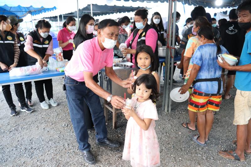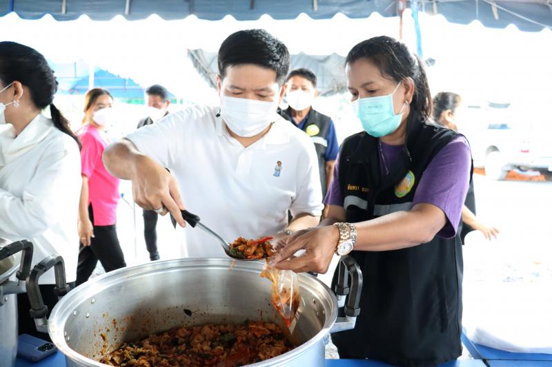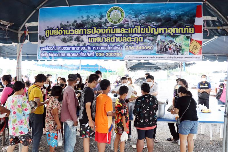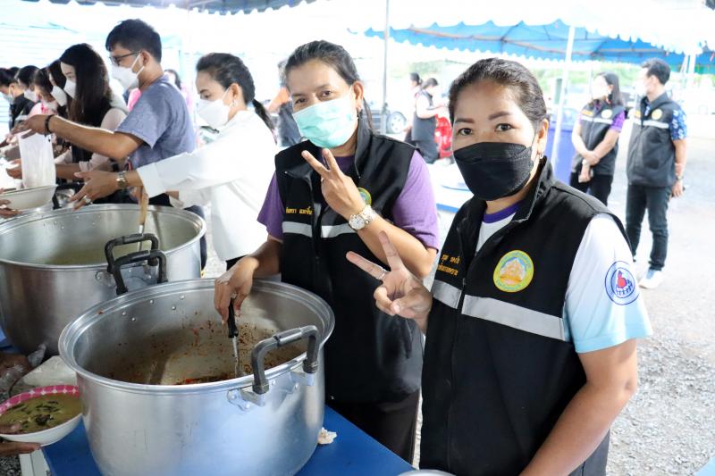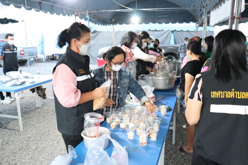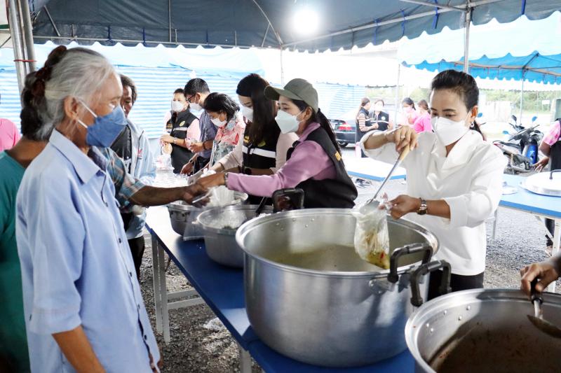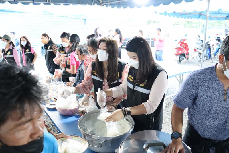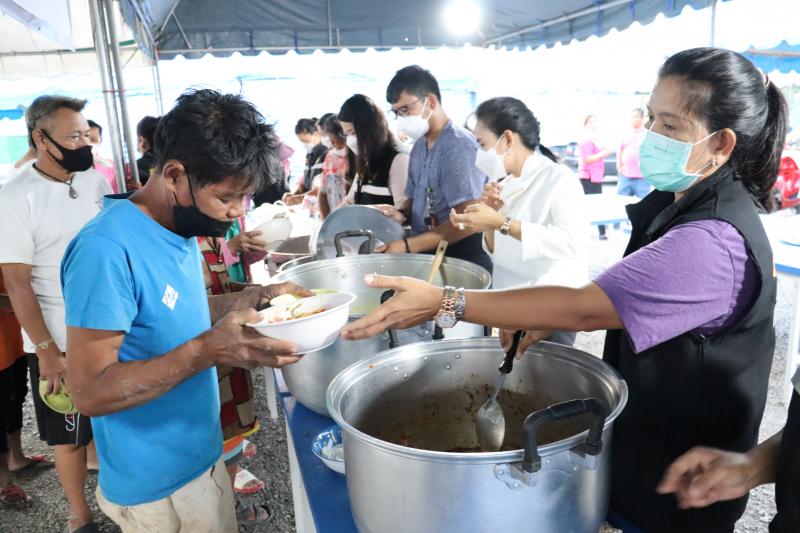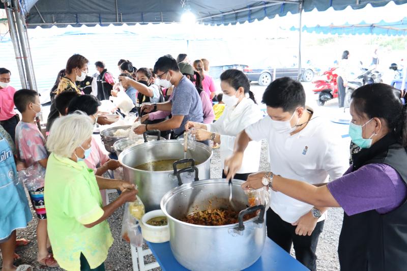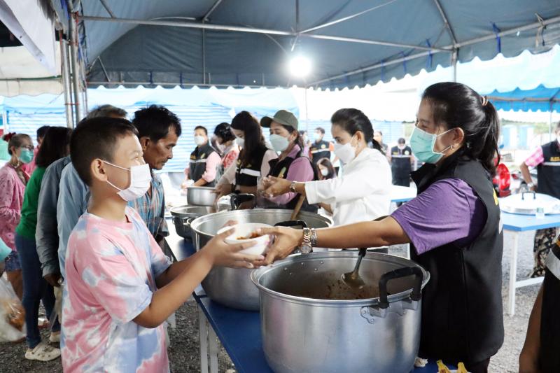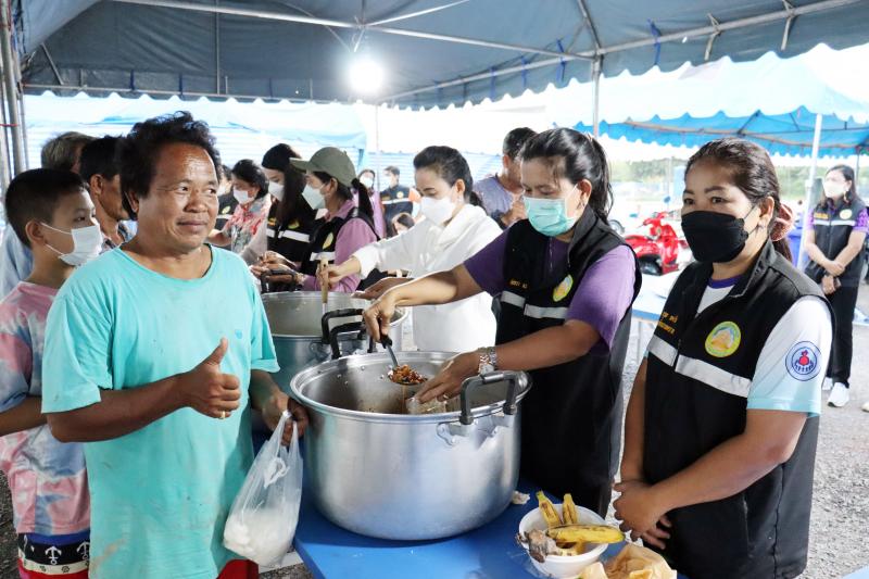 แจกจ่ายอาหารสำหรับมื้อเย็นให้ประชาชนที่ได้รับความเดือดร้อนจากอุทกภัย