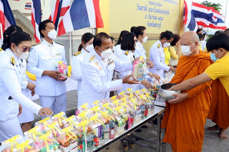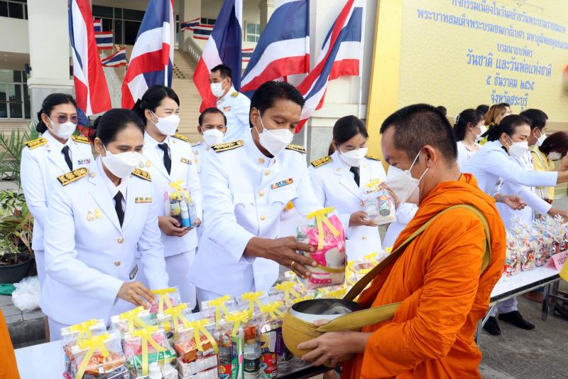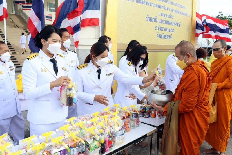 พิธีทำบุญตักบาตร เพื่อถวายเป็นพระราชกุศล เนื่องในวันคล้ายวันพระบรมราชสมภพ พระบาทสมเด็จพระบรมชนกาธิเบศร มหาภูมิพลอดุยเดชมหาราช บรมนาถบพิตร วันชาติ และวันพ่อแห่งชาติ ๕ ธันวาคม ๒๕๖๕