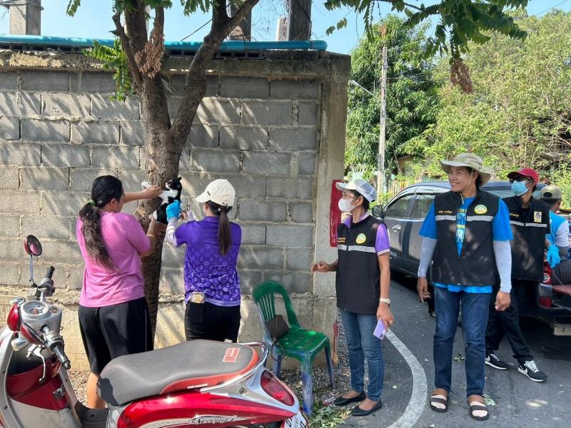 รายละเอียด : วันที่ 13-14 มีนาคม 2567 นางสาวสิริกัลยา เนตรอินทร์ นายกเทศมนตรีตำบลตะกุด ได้มอบหมายให้เจ้าหน้าที่กองสาธารณสุขและสิ่งแวดล้อมโดย นางเนาวรัตน์ เรือนจันทร์ หัวหน้าฝ่ายบริหารงานสาธารณสุขฯ นางสาวนันท์นภัส กินกิ่ง นักวิชาการสาธารณสุขฯ และเจ้าหน้าที่จากงานป้องกันและบรรเทาสาธารณภัย (ตัวแทนอาสาฉีดวัคซีน) เทศบาลตำบลตะกุด ออกรณรงค์และฉีดวัคซีนป้องกันโรคพิษสุนัขบ้าให้กับสุนัขและแมว ในเขตพื้นที่เทศบาลตะกุด ตามโครงการสัตว์ปลอดโรค คนปลอดภัย จากโรคพิษสุนัขบ้าฯ ประจำปี 2567 โดยมีวัตถุประสงค์ เพื่อป้องกันและควบคุมการแพร่ระบาดของโรคพิษสุนัขบ้า