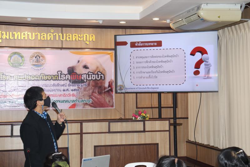 ซึ่งการจัดโครงการนี้ เพื่อให้ตัวแทนอาสาฉีดวัคซีนมีความรู้ ความเข้าใจในการฉีดวัคซีนป้องกันโรคพิษสุนัขบ้า และสามารถให้ความรู้เรื่องโรคพิษสุนัขบ้าและการดูแลสัตว์เลี้ยงอย่างถูกต้องและรับผิดชอบ ตระหนักถึงอันตรายของโรคพิษสุนัขบ้า การปฏิบัติตนเพื่อป้องกันสัตว์เลี้ยงกัดและการปฏิบัติตนหลังจากถูกสัตว์เลี้ยงกัด แก่ประชาชนใน จำนวนผู้เข้าร่วมกิจกรรม 50 คน โดยวิทยากรจากสำนักงานปศุสัตว์จังหวัดสระบุรี