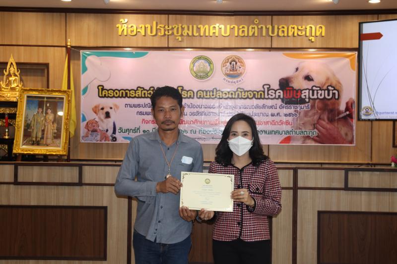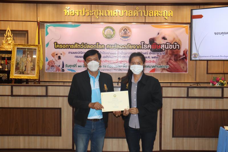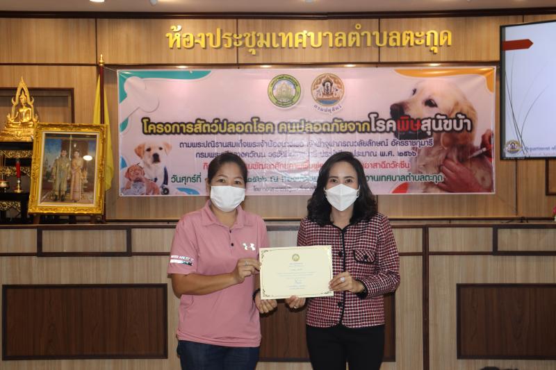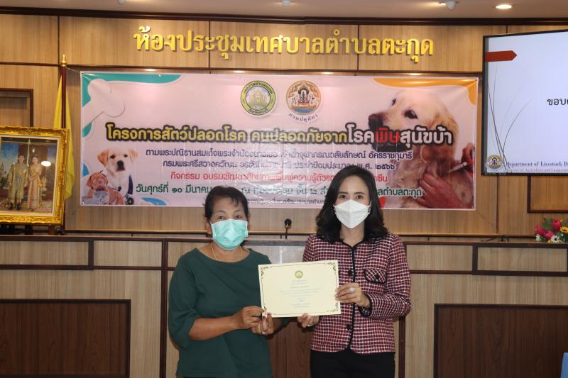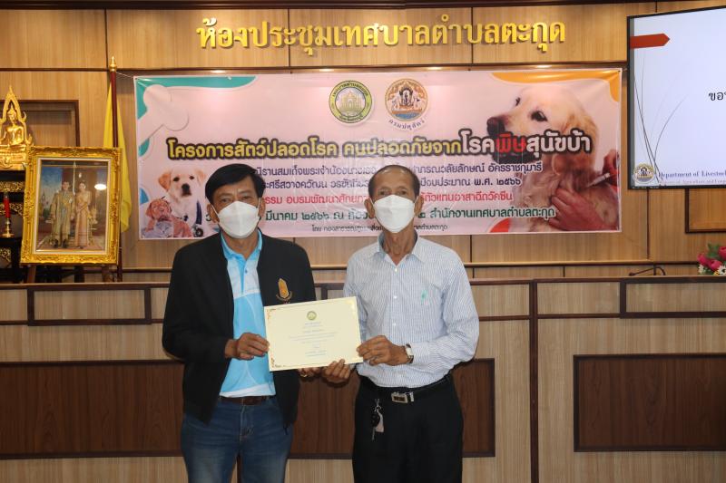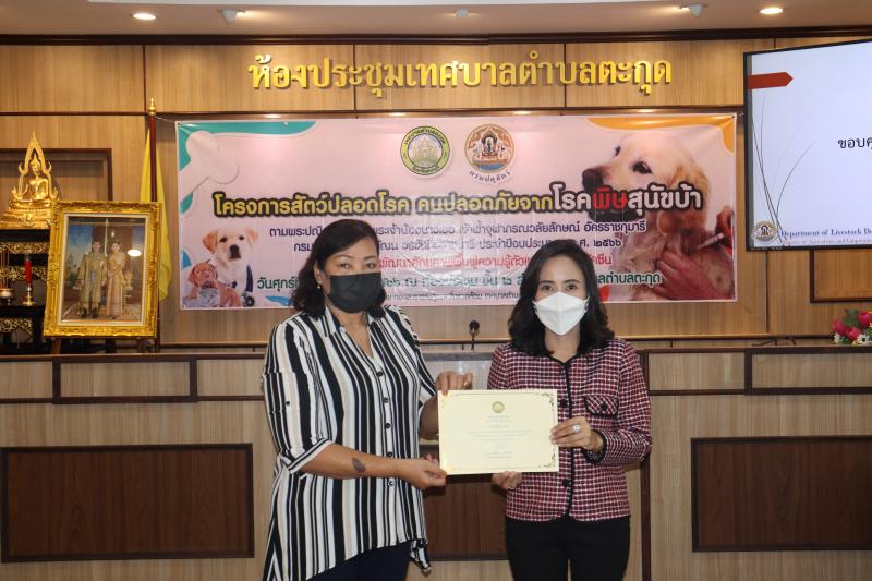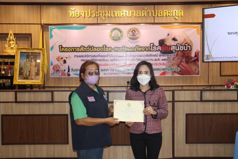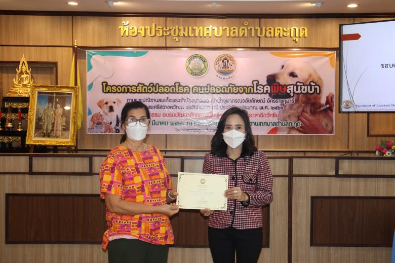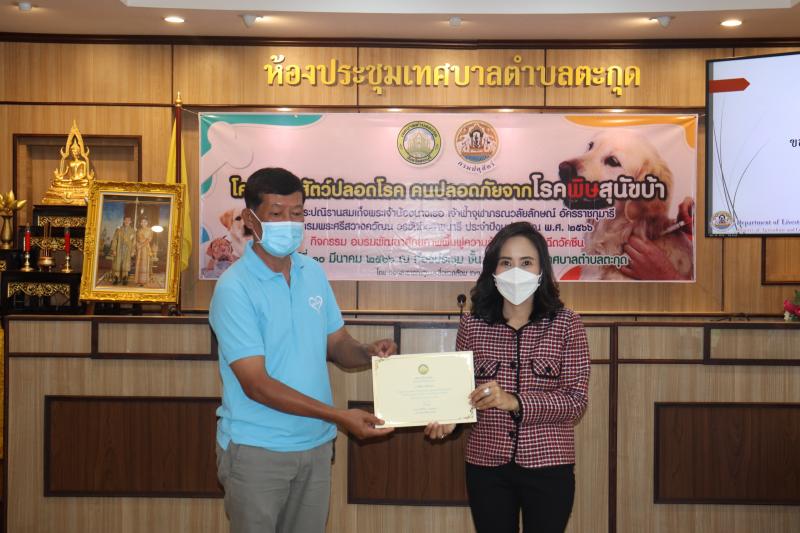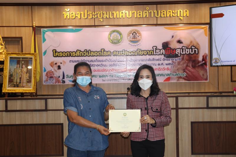 โครงการสัตว์ปลอดโรค คนปลอดภัยจากโรคพิษสุนัขบ้าฯ และมอบเกียรติบัตรให้กับผู้ผ่านการอบรม ในกิจกรรม อบรมพัฒนาศักยภาพ ฟื้นฟูความรู้ตัวแทนอาสาฉีดวัคซีน ประจำปีงบประมาณ พ.ศ. 2566