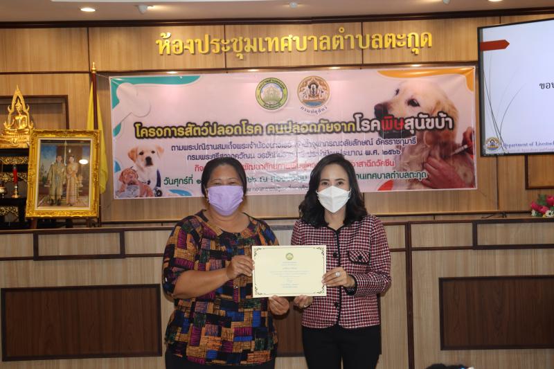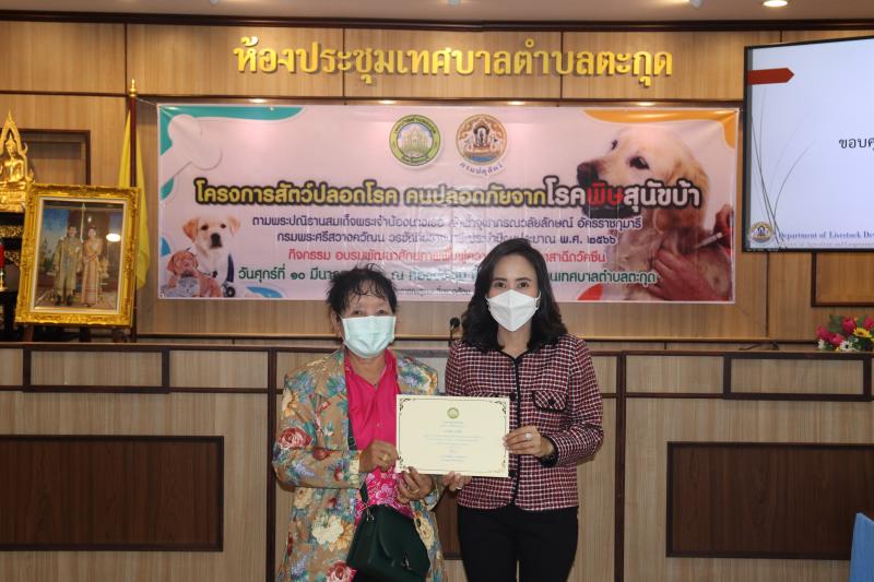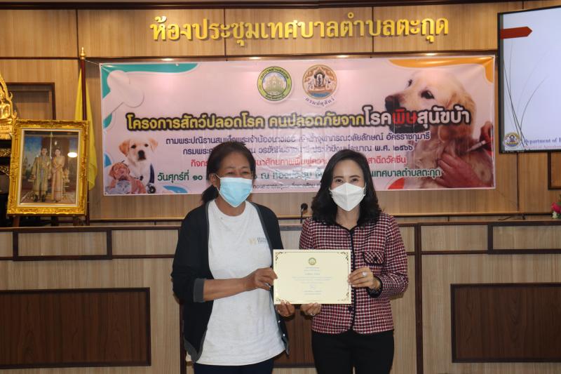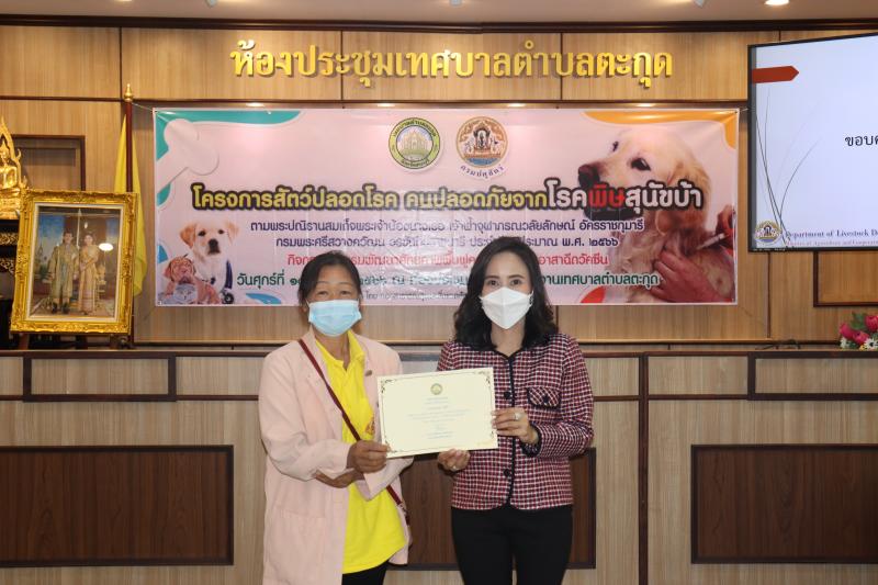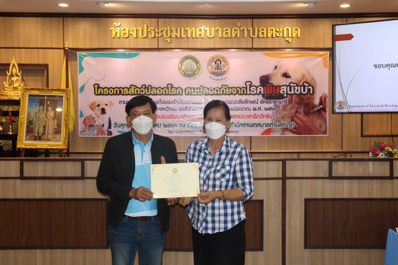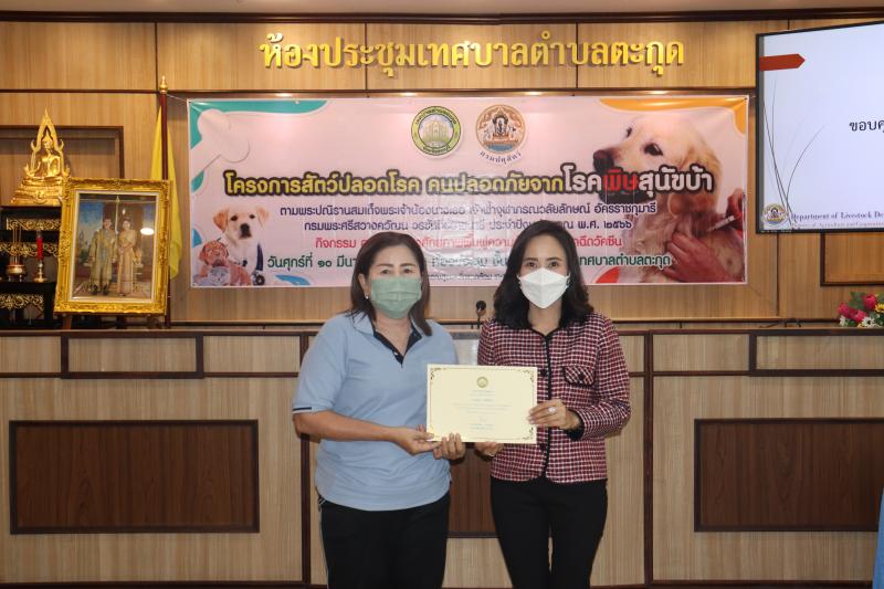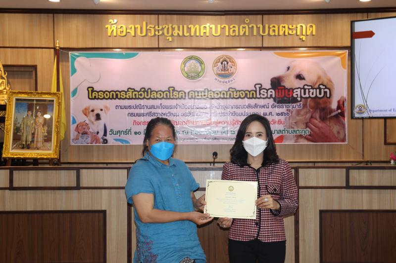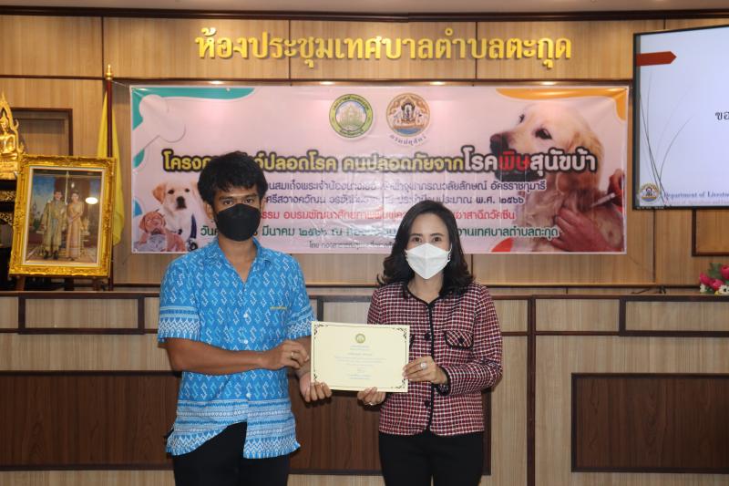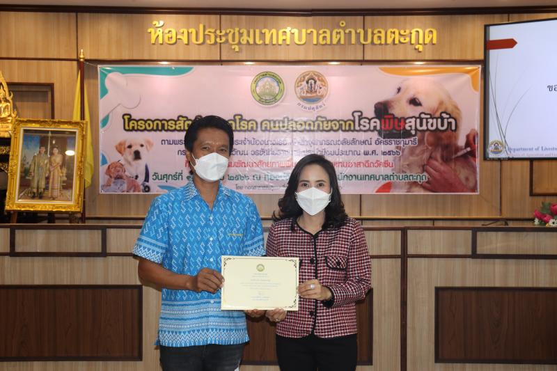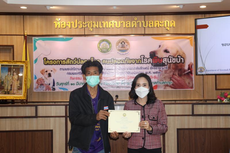 โครงการสัตว์ปลอดโรค คนปลอดภัยจากโรคพิษสุนัขบ้าฯ และมอบเกียรติบัตรให้กับผู้ผ่านการอบรม ในกิจกรรม อบรมพัฒนาศักยภาพ ฟื้นฟูความรู้ตัวแทนอาสาฉีดวัคซีน ประจำปีงบประมาณ พ.ศ. 2566