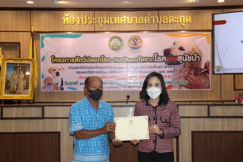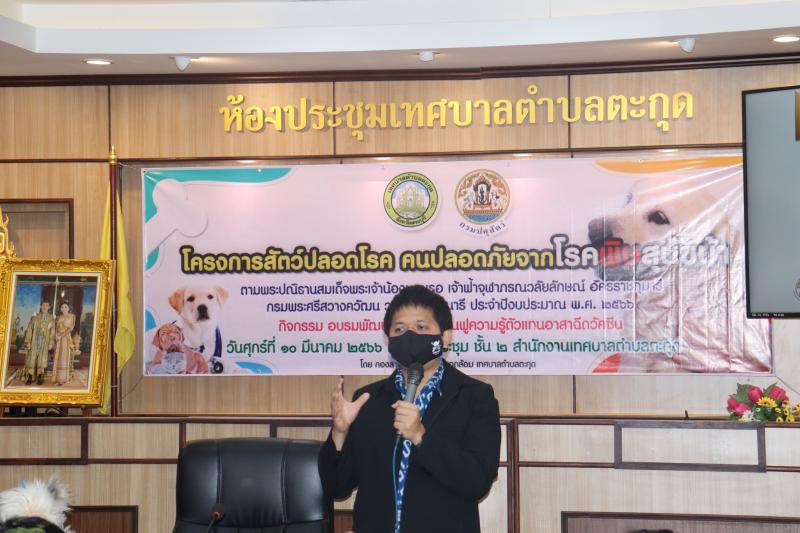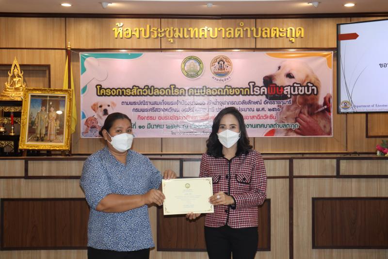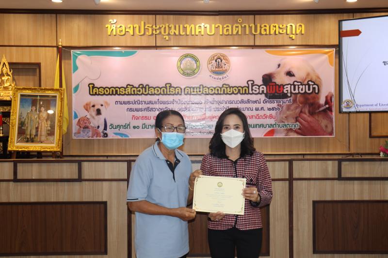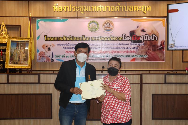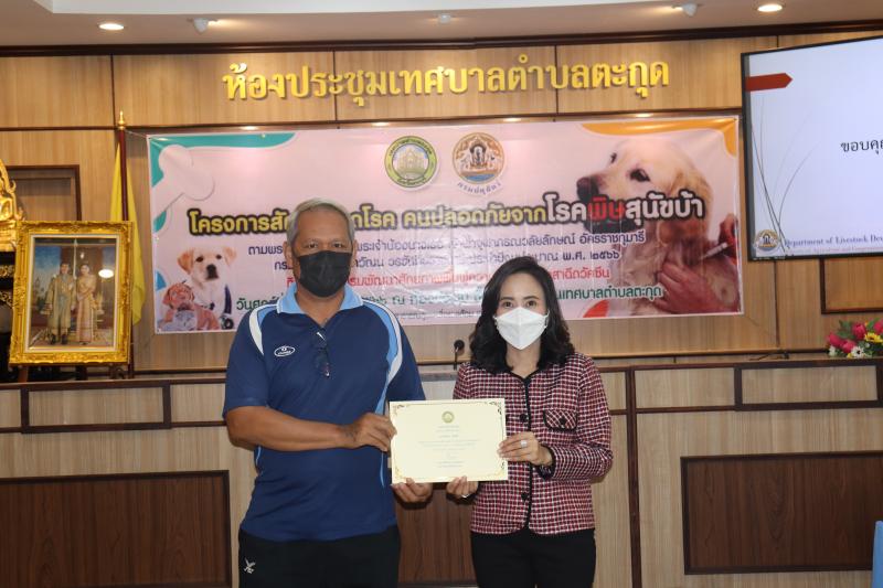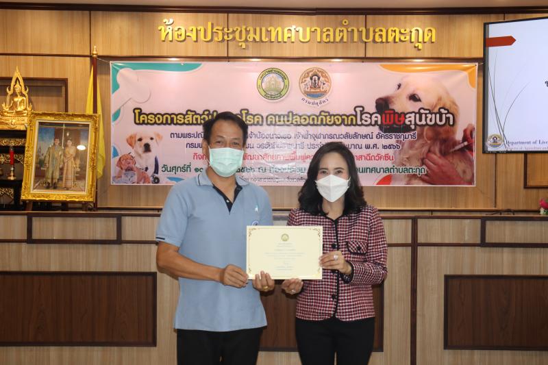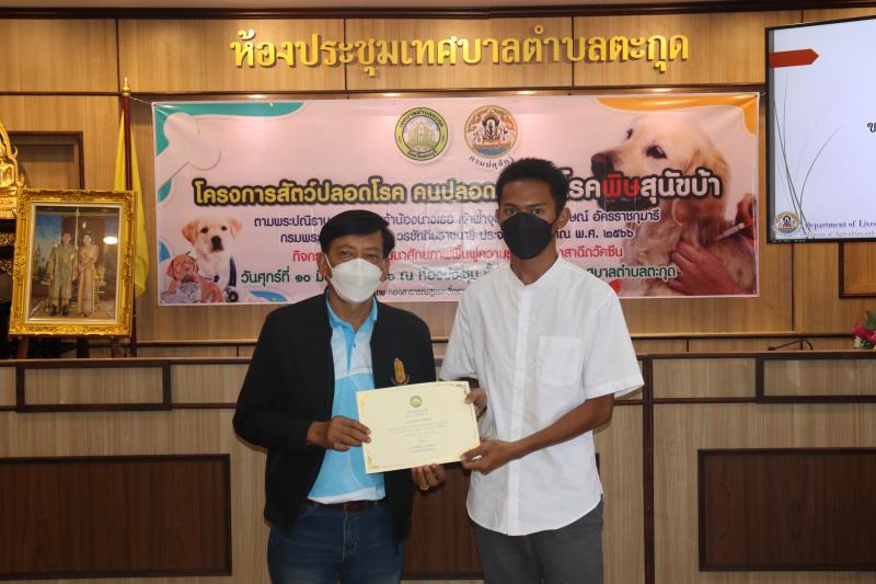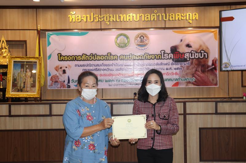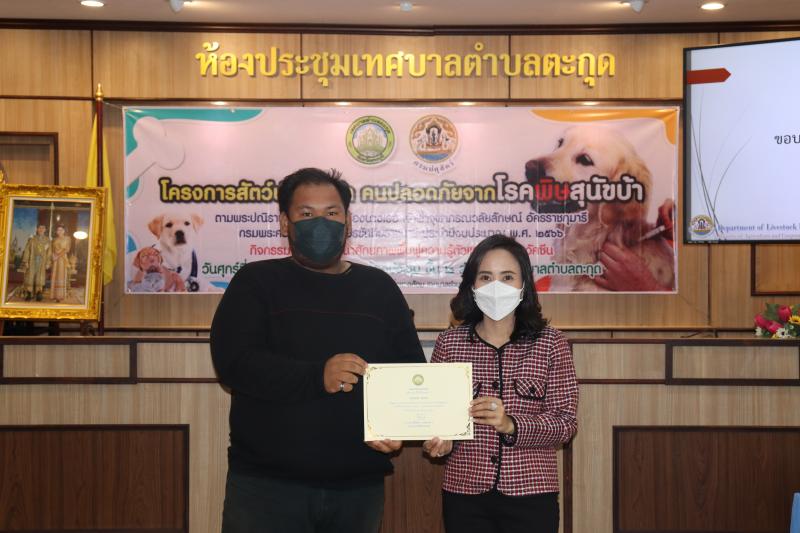 โครงการสัตว์ปลอดโรค คนปลอดภัยจากโรคพิษสุนัขบ้าฯ และมอบเกียรติบัตรให้กับผู้ผ่านการอบรม ในกิจกรรม อบรมพัฒนาศักยภาพ ฟื้นฟูความรู้ตัวแทนอาสาฉีดวัคซีน ประจำปีงบประมาณ พ.ศ. 2566