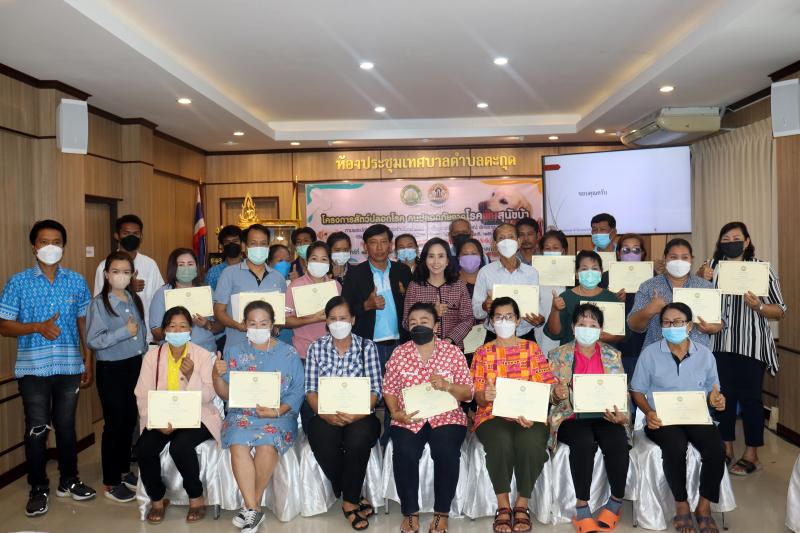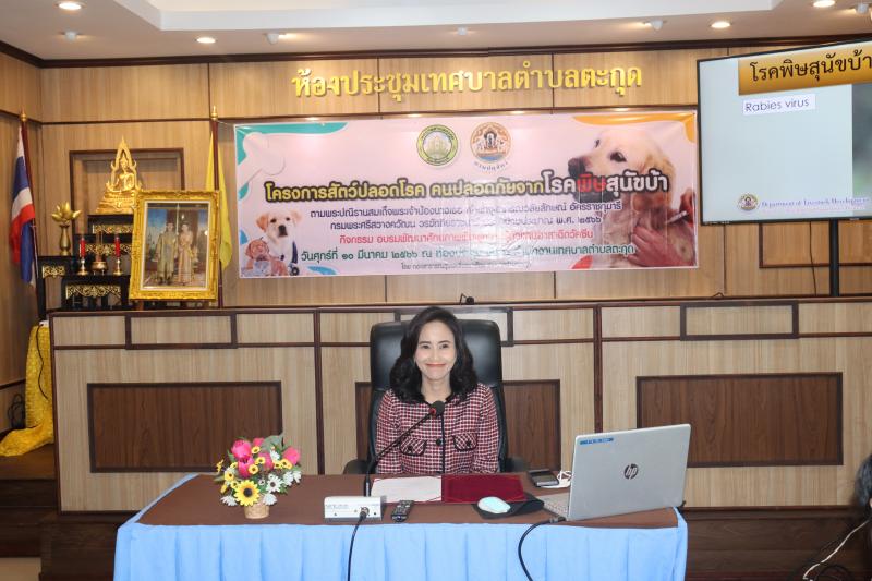 นางสาวสิริกัลยา เนตรอินทร์ นายกเทศมนตรีตำบลตะกุด มาเป็นประธานพิธีเปิดโครงการสัตว์ปลอดโรค คนปลอดภัยจากโรคพิษสุนัขบ้าฯ และมอบเกียรติบัตรให้กับผู้ผ่านการอบรม ในกิจกรรม อบรมพัฒนาศักยภาพ ฟื้นฟูความรู้ตัวแทนอาสาฉีดวัคซีน ประจำปีงบประมาณ พ.ศ. 2566 พร้อมทั้ง ผู้นำชุมชน ตัวแทนสถานศึกษา ข้าราชการและพนักงานจ้าง เทศบาลตำบลตะกุด ร่วมเป็นเกียรติในพิธีเปิด โครงการฯ ณ ห้องประชุมชั้น 2 สำนักงานเทศบาลตำบลตะกุด