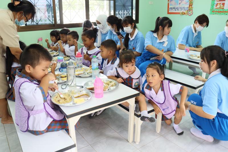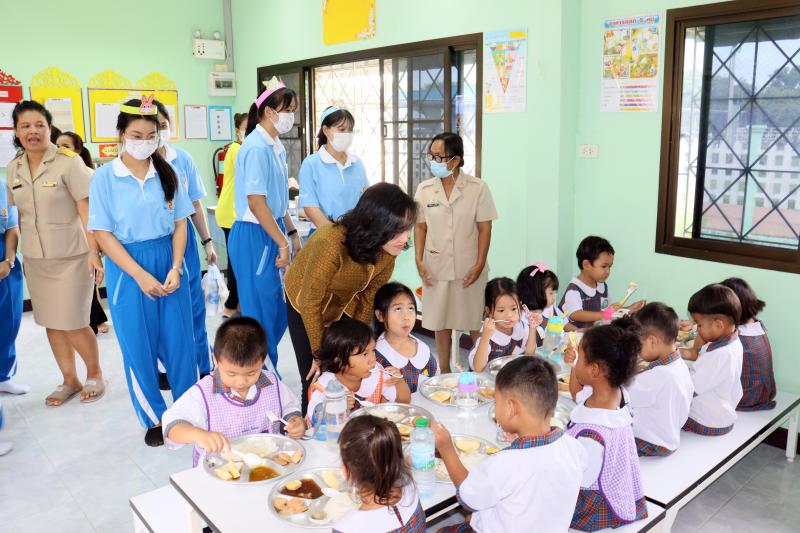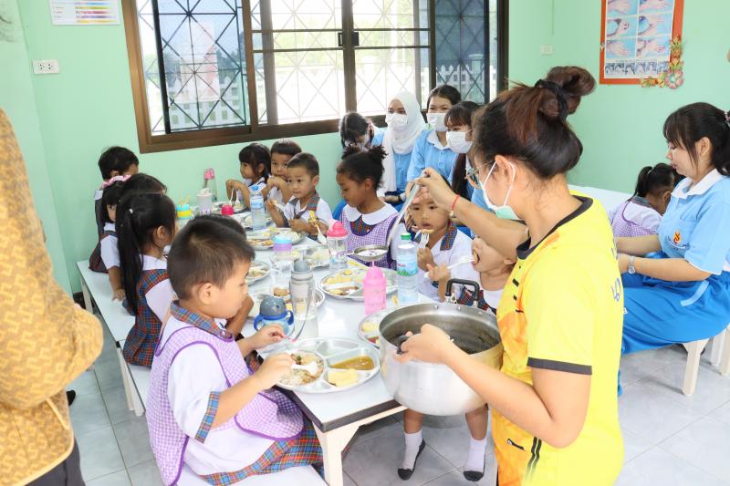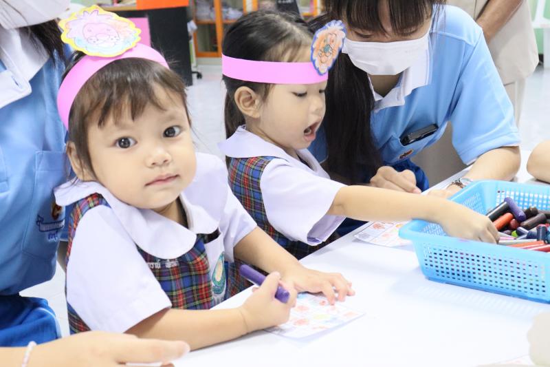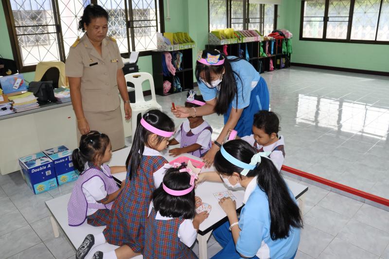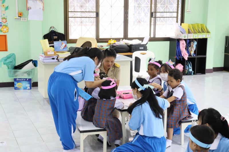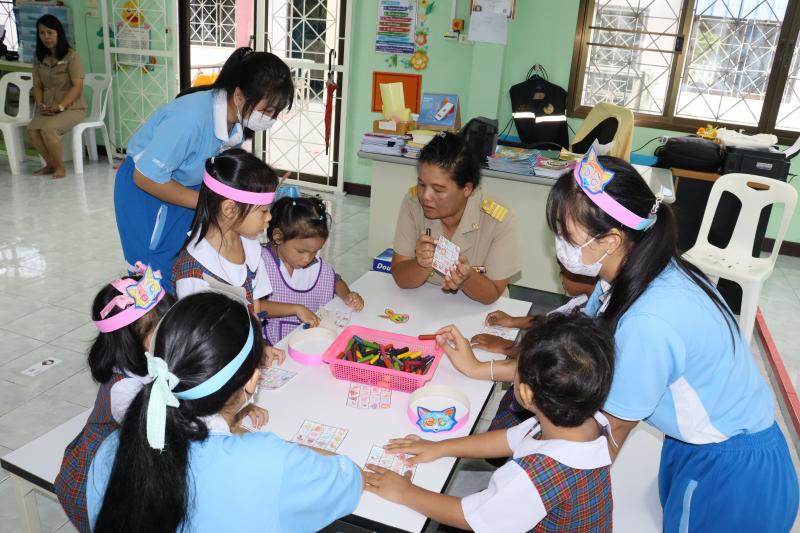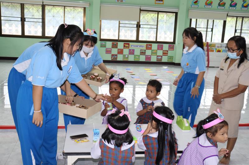 รายละเอียด : วันจันทร์ที่ 2 ตุลาคม 2566 เวลา 09.00 น. นางสาวสิริกัลยา เนตรอินทร์ นายกเทศบาลตำบลตะกุด พร้อมด้วย นางจันทรา แรกขึ้น เลขานุการนายกเทศมนตรี นางสมพิศ แก้วปัญญา ที่ปรึกษานายกเทศมนตรี นางสมสุข ฐานะวร ผู้อำนวยการกองคลัง รักษาราชการแทนผู้อำนวยการกองการศึกษา และ นางอรุณ ทองวัน สมาชิกสภาเทศบาล เขต 1 คณะนักศึกษาวิทยาลัยพยาบาลบรมราชชนนีสระบุรี จำนวน 11 ท่าน จัดกิจกรรมจิตอาสา เพื่อสันทนาการในโครงการพาน้องปันสุข for FUN วัตถุประสงค์เพื่อบริจาคแจกขนมและอุปกรณ์การเรียนให้เด็กๆ เพื่อให้น้องในศูนย์เด็กเล็กเทศบาลตำบลตะกุด มีความรู้เกี่ยวกับสุขภาพเช่น การล้างมือ การออกกำลังกาย มีความคิดสร้างสรรค์ กล้าแสดงออก และรู้จักมีส่วนร่วมในสังคม โดยมีกิจกรรม ดังนี้ กิจกรรมที่ 1 ระบายสีและแบ่งกลุ่ม กิจกรรมที่ 2 จับคู่คำศัพท์ภาษาอังกฤษ กิจกรรมที่ 3 บิงโกรูปผลไม้ กิจกรรมที่ 4 จับคู่ตามจำนวน กิจกรรมที่ 5 ต่อจิ๊กซอว์พาเพลิน และเยี่ยมชมการรับประทานอาหารกลางวันของศูนย์พัฒนาเด็กเล็กเทศบาลตำบลตะกุด