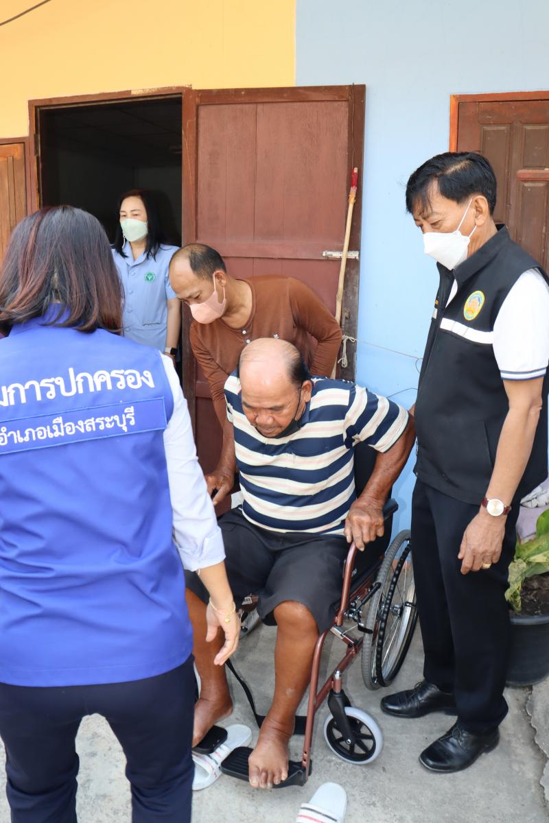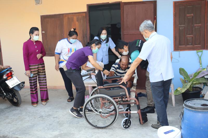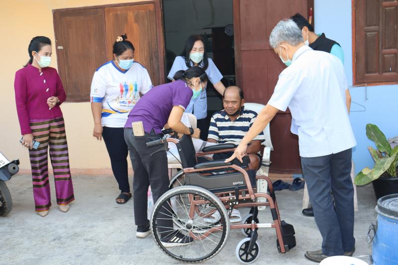 ลงพื้นที่มอบรถวีลแชร์ (Wheel chair) และชุดเครื่องอุปโภคบริโภคให้กับนายสมยศ ทองเทพ ผู้พิการประเภททางการเคลื่อนไหว หมู่ที่ 2