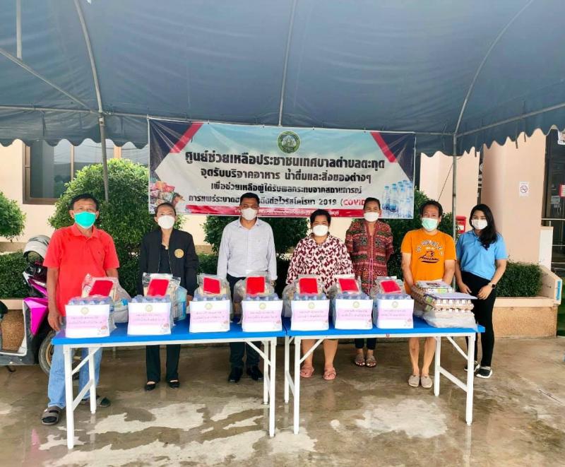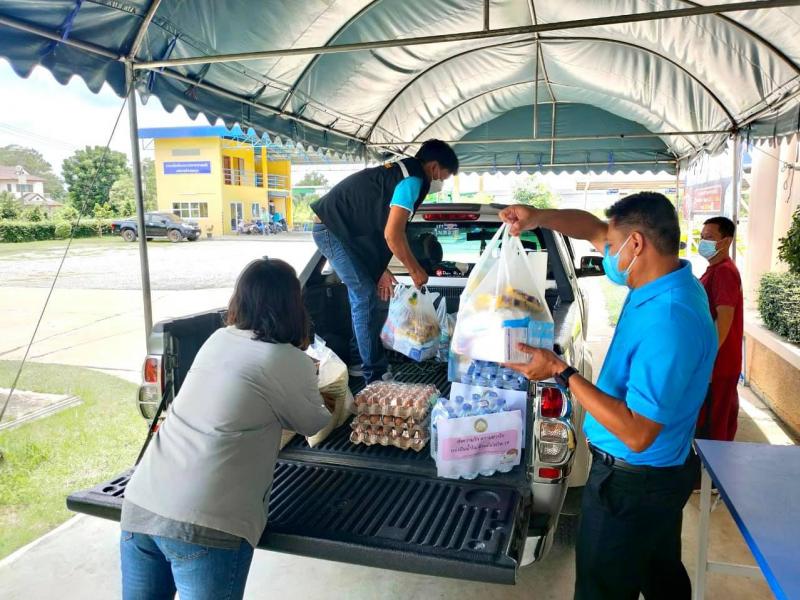 ส่งมอบถุงยังชีพสำหรับผู้กักกันตนเอง ณ ที่พักอาศัย(Home Quarantine) และผู้ป่วย Covid-19 รักษาตัวที่บ้าน (Home isolation) ให้กับผู้นำหมู่บ้านและตัวแทน อสม. เพื่อส่งต่อไปยังผู้กันกันตน หมู่ที่ 1,2,4 และ หมู่ที่ 6