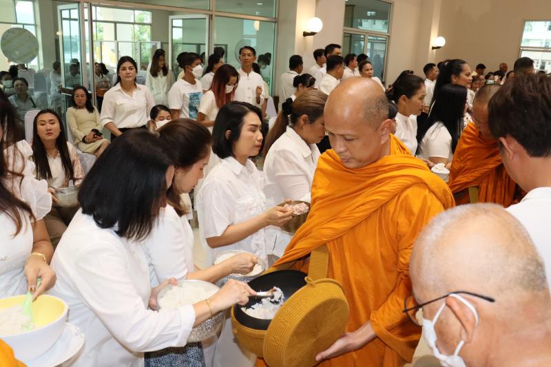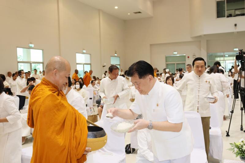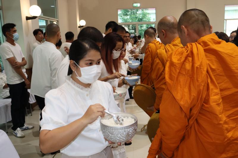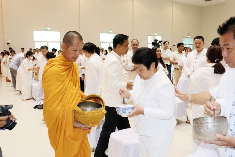พิธีตักบาตรและบรรยายธรรม (หลักสูตร เสริมสร้างคุณธรรมจริยธรรม) โครงการร้อยใจไทย สืบสานราชธรรม ทั้งแผ่นดิน