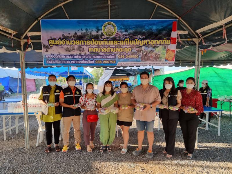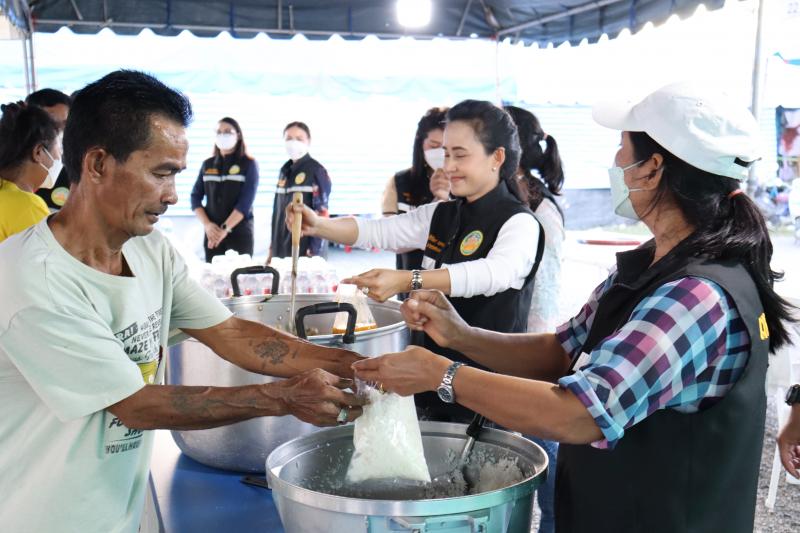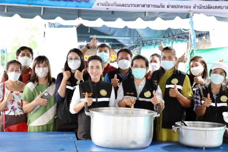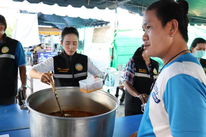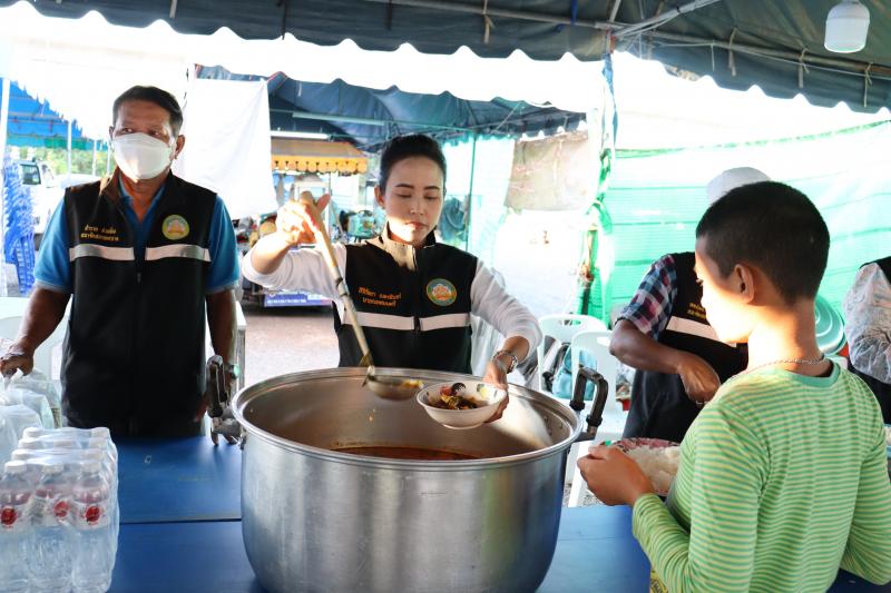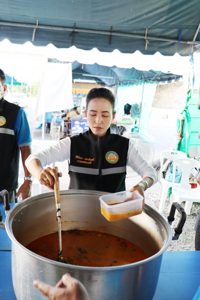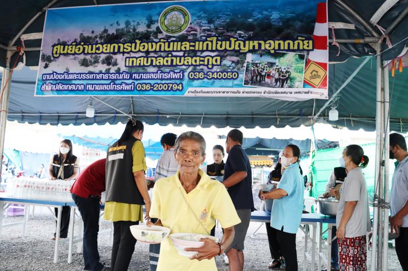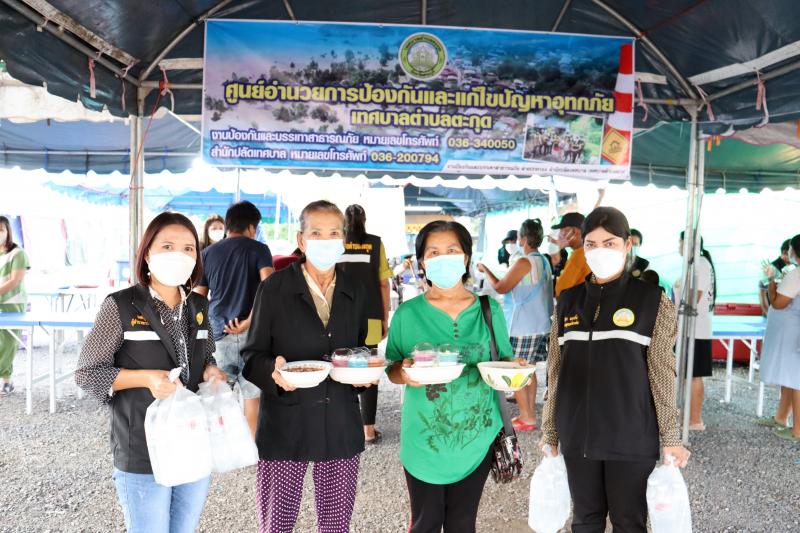 แจกจ่ายอาหารสำหรับมื้อเย็นให้ประชาชนที่ได้รับความเดือดร้อนจากอุทกภัยได้อิ่มท้องกันทั่วหน้า ณ ศูนย์อำนวยการป้องกันและแก้ไขปัญหาอุทกภัย เทศบาลตำบลตะกุด