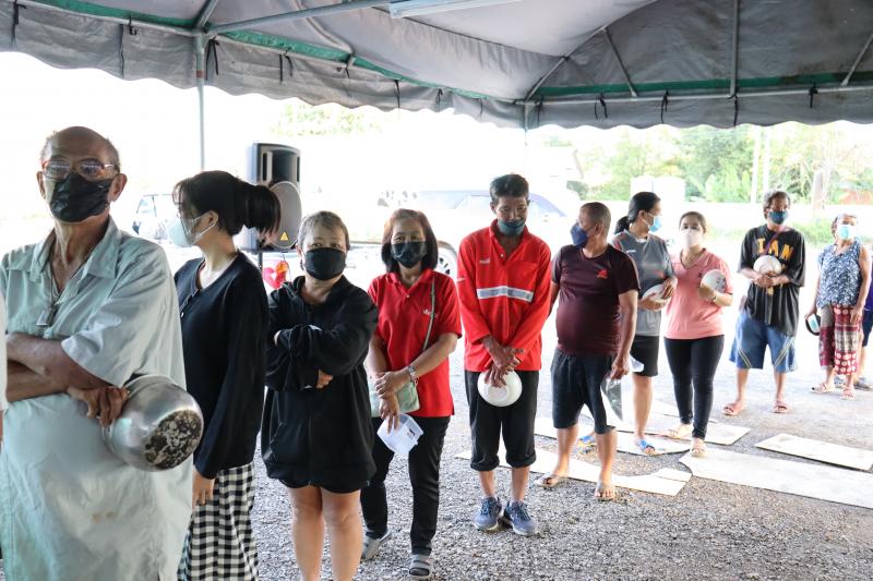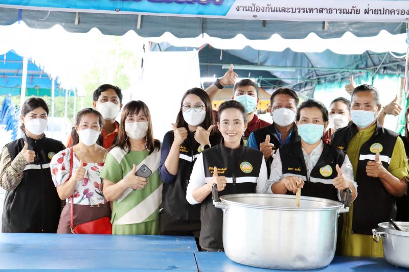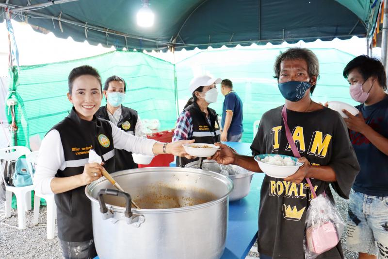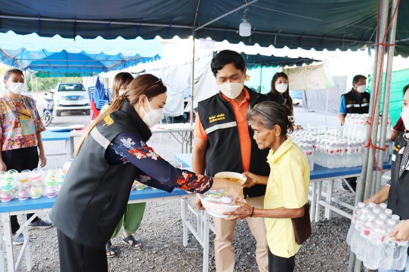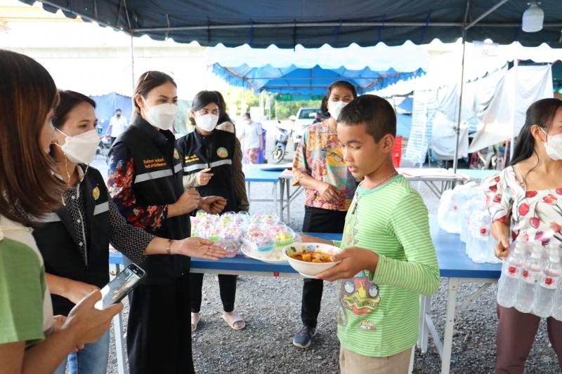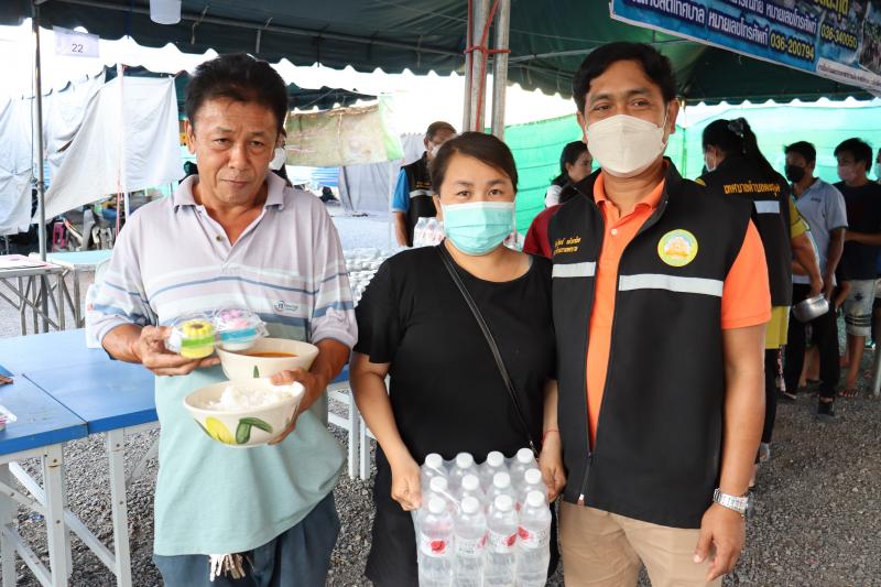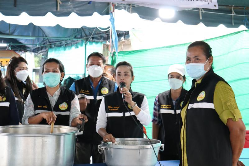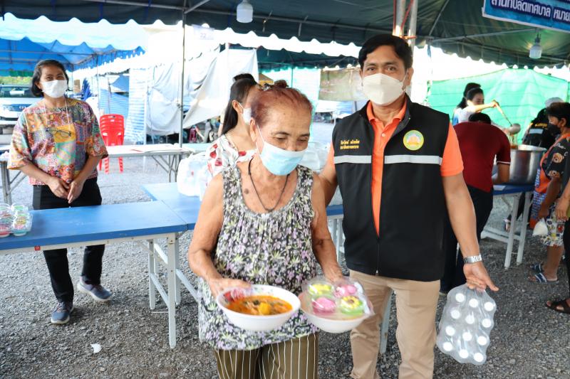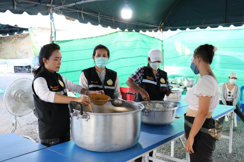 แจกจ่ายอาหารสำหรับมื้อเย็นให้ประชาชนที่ได้รับความเดือดร้อนจากอุทกภัยได้อิ่มท้องกันทั่วหน้า ณ ศูนย์อำนวยการป้องกันและแก้ไขปัญหาอุทกภัย เทศบาลตำบลตะกุด