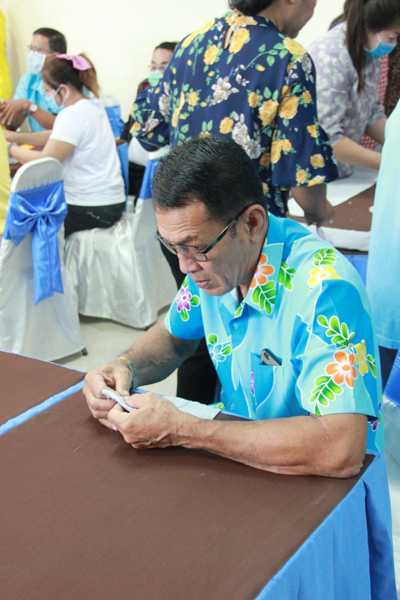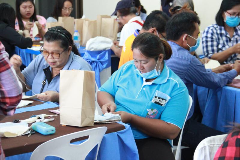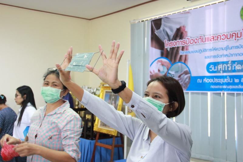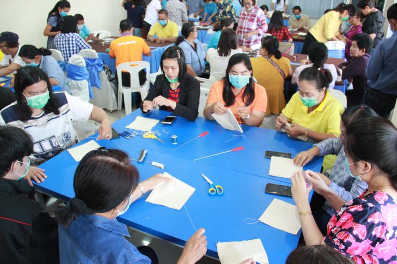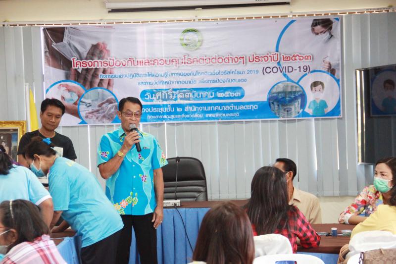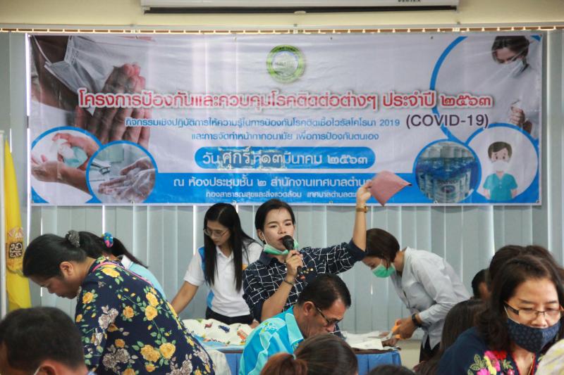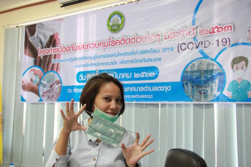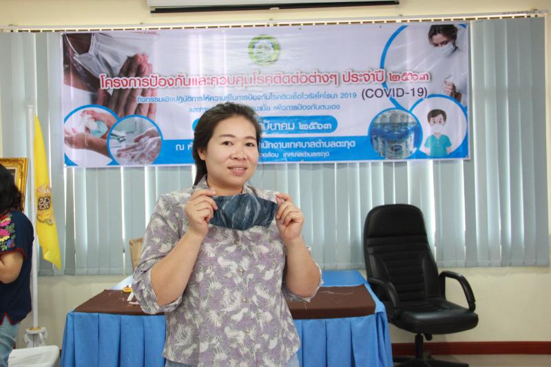 วันศุกร์ที่ 13 มีนาคม 2563 นายสมศักดิ์ พวงกุหลาบ นายกเทศมนตรีตำบลตะกุด พร้อมด้วย คณะผู้บริหารฯ ปลัดเทศบาลฯ ข้าราชการ พนักงานฯ ตัวแทนหมู่บ้านทุกหมู่ ตัวแทน อสม.ในพื้นที่ ได้เข้าร่วมกิจรรม การจัดทำหน้ากากอนามัยเพื่อการป้องกันตนเองโรคติดเชื้อไวรัสโคโรนา 2019 (COVID-19) และเป็น ครู ก ในการสอนให้ประชาชน ในพื้นที่สามารถจัดทำหน้ากากอนามัยขึ้นใช้เอง เป็นการประหยัด สร้างรายได้ให้เกิดขึ้นที่ชุมชนต่อไป โดย มีผู้เข้าร่วมกิจกรรม ทั้งสิ้น 57 คน