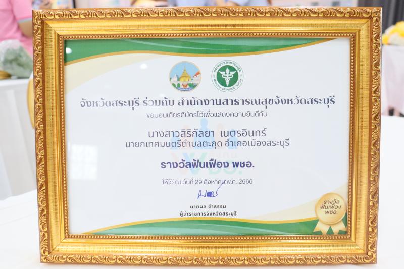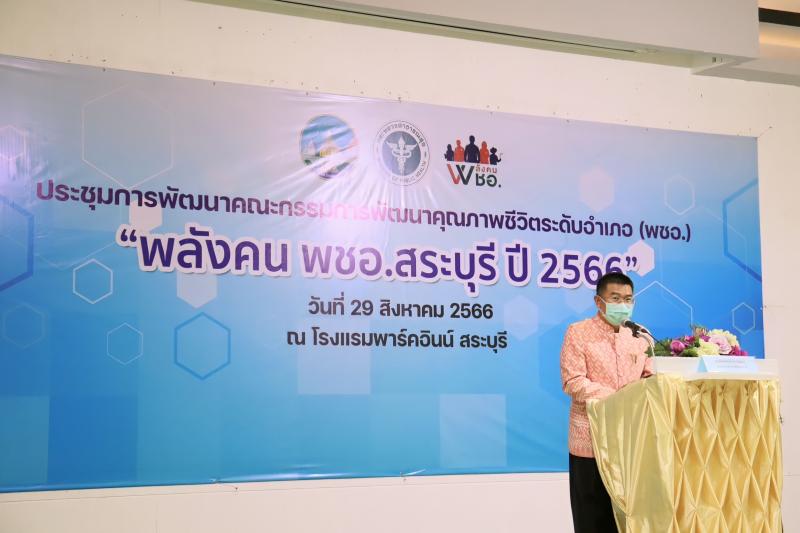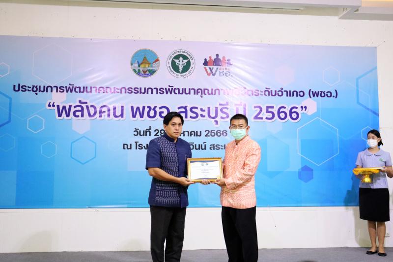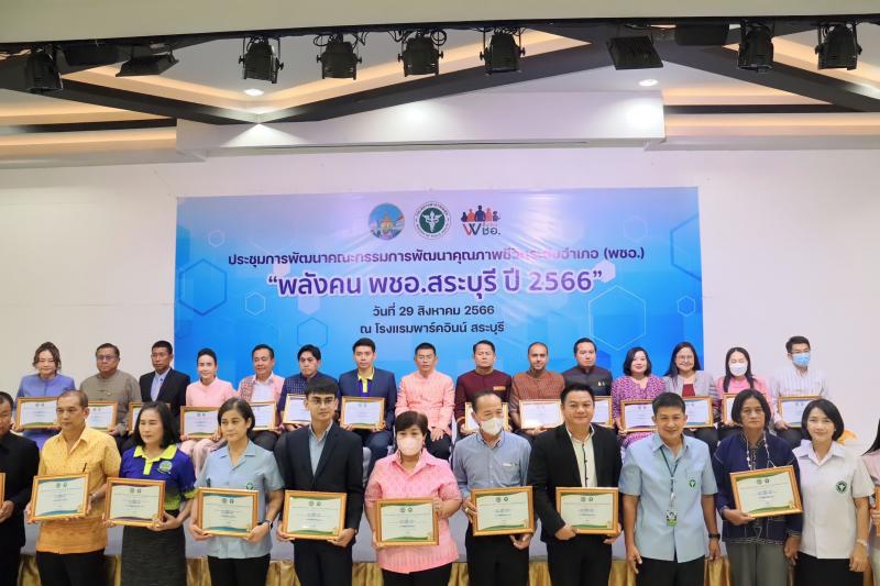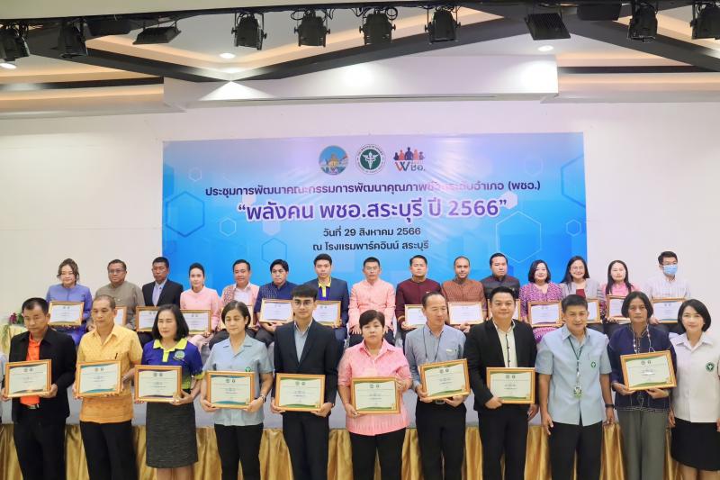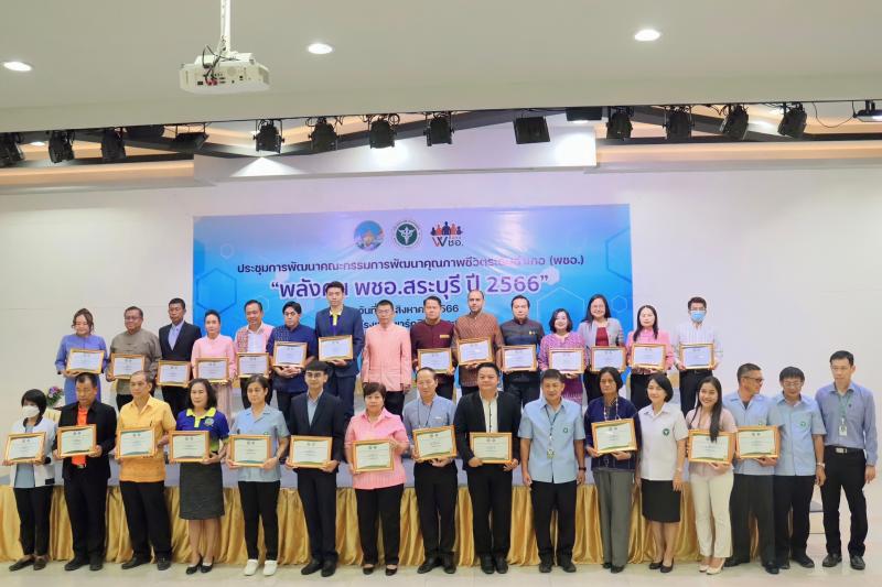 โดยมี นายกิตติศักดิ์ ธีระวัฒนา รองผู้ว่าราชการจังหวัดสระบุรี เป็นประธานการมอบเกียรติบัตรและประธานการประชุมเชิงปฏิบัติการการพัฒนาคณะกรรมการพัฒนาคุณภาพชีวิตระดับอำเภอ (พชอ.) จังหวัดสระบุรี 2566 พร้อมด้วย นายแพทย์ประสิทธิ์ชัย มั่งจิตร รองนายแพทย์สาธารณสุขจังหวัดสระบุรี ร่วมมอบเกียรติบัตรชื่นชมให้กับคณะกรรมการพัฒนาคุณภาพชีวิตระดับอำเภอ (พชอ.) ในงาน ประชุมการพัฒนาคณะกรรมการพัฒนาคุณภาพชีวิตระดับอำเภอ (พชอ.) ปี 2566 “อำเภอสุขใจ พลังคน พชอ. สระบุรี”