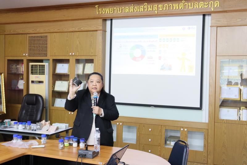 รายละเอียด : วันศุกร์ที่ 22 กันยายน พ.ศ. 2566 เวลา 09.30 น. นางสาวสิริกัลยา เนตรอินทร์ นายกเทศมนตรีตำบลตะกุด ให้เกียรติเป็นประธานพิธีเปิดการอบรมแกนนำครัวเรือนในการคัดแยกขยะ และการนำขยะมาใช้เป็นประโยชน์ ณ ห้องประชุมโรงพยาบาลส่งเสริมสุขภาพตำบลตะกุด โดยมีคณะทำงานโครงการ ตะกุดรวมพลัง ร่วมใจพัฒนา ลดปัญหาขยะในครัวเรือน 3Rs ผู้ใหญ่บ้านทุกหมู่ และตัวแทนประชาชนตำบลตะกุด เข้าร่วมการอบรม โดยได้รับเกียรติจาก ดร.เรวดี อนุวัฒนา ผู้เชี่ยวชาญวิจัย กลุ่มวิจัยและพัฒนาด้านพัฒนาอย่างยั่งยืน สถาบันวิจัยวิทยาศาสตร์และเทคโนโลยีแห่งประเทศไทย (วว.) และคณะ มาเป็นวิทยากรการอบรมในครั้งนี้ โดยมีวัตถุประสงค์เพื่อลดปริมาณขยะด้วยการคัดแยกขยะในครัวเรือน และการนำขยะกลับมาใช้ประโยชน์
