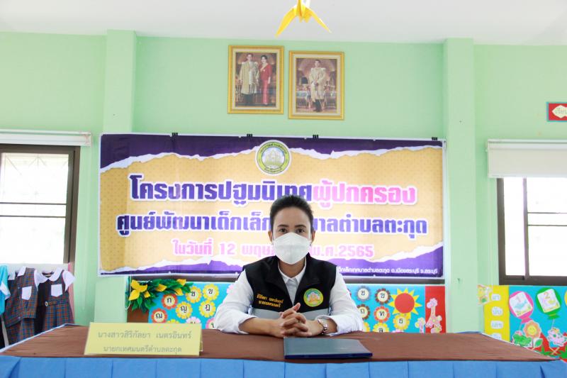 รายละเอียด : วันพฤหัสบดีที่ 12 พฤษภาคม พ.ศ. 2565 เวลา 09.30 น. นางสาวสิริกัลยา เนตรอินทร์ นายกเทศมนตรีตำบลตะกุด เป็นประธานพิธีเปิดโครงการปฐมนิเทศผู้ปกครองศูนย์พัฒนาเด็กเล็กเทศบาลตำบลตะกุด ณ ศูนย์พัฒนาเด็กเล็กเทศบาลตำบลตะกุด หมู่ที่ 6 ตำบลตะกุด พร้อมด้วยคณะผู้บริหาร คณะกรรมการศูนย์พัฒนาเด็กเล็กเทศบาลตำบลตะกุด และพนักงานเทศบาล โดยมีวัตถุประสงค์เพื่อให้ผู้ปกครองได้รับทราบข้อมูลเกี่ยวกับนโยบาย แนวทางการเรียนการสอนในระดับปฐมวัย การปฏิบัติตามกฎระเบียบที่ศูนย์พัฒนาเด็กเล็กเทศบาลตำบลตะกุดกำหนด เพื่อเป็นการวางรากฐานทางการศึกษาที่มั่นคงให้กับเด็กปฐมวัย ตลอดจนการสร้างความสัมพันธ์อันดีระหว่างผู้ปกครอง คณะผู้บริหาร และบุคลากรการศึกษา โดยมีกลุ่มเป้าหมายประกอบด้วย ผู้ปกครอง เด็กนักเรียน ศูนย์พัฒนาเด็กเล็กเทศบาลตำบลตะกุด คณะครูและผู้ดูแลเด็ก จำนวนทั้งสิ้น 40 คน