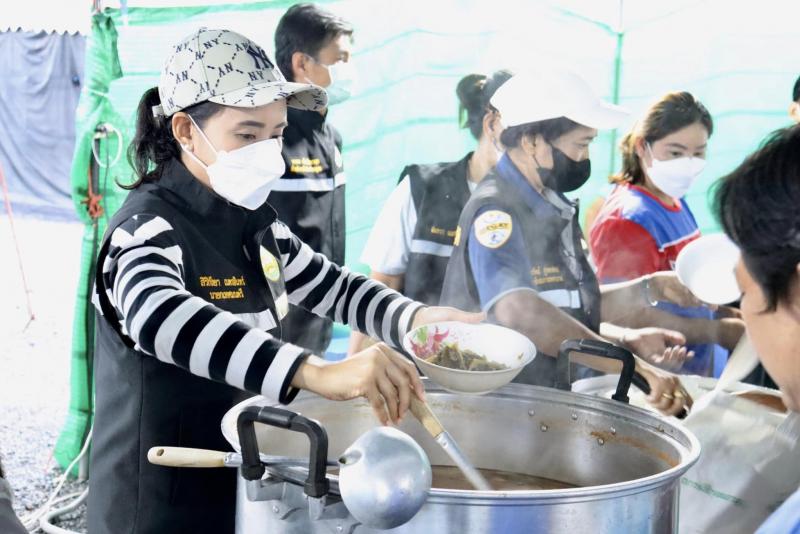 “น้องเอ็ม และ น้องปุน” จากร้านหมูปิ้งลูกคุณหนู มาช่วยตักอาหาร แจกจ่ายกับข้าวให้กับประชาชนที่ได้รับผลกระทบจากอุทกภัย ณ ศูนย์อำนวยการป้องกันและแก้ไขปัญหาอุทกภัย เทศบาลตำบลตะกุด