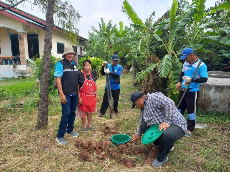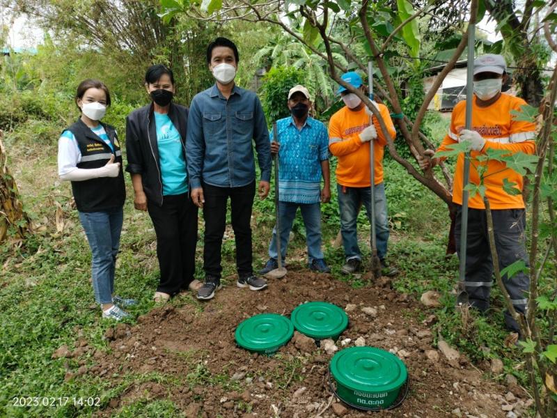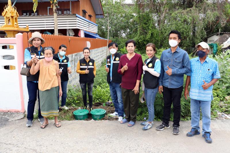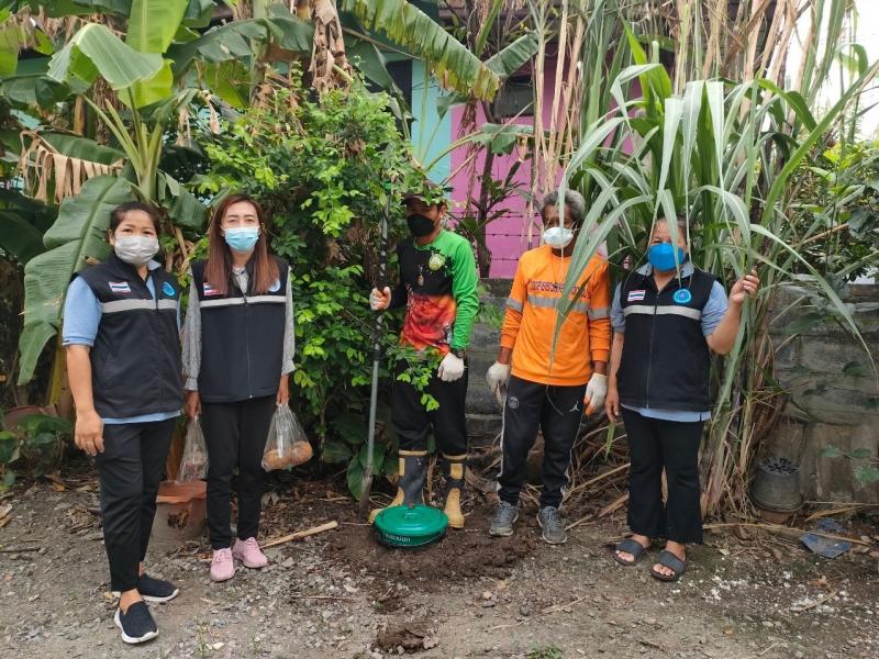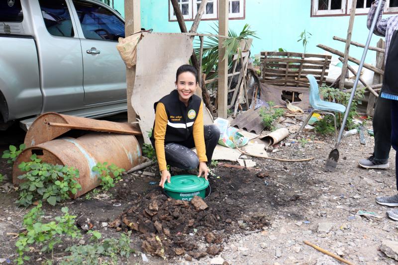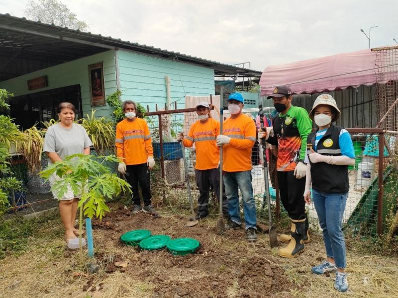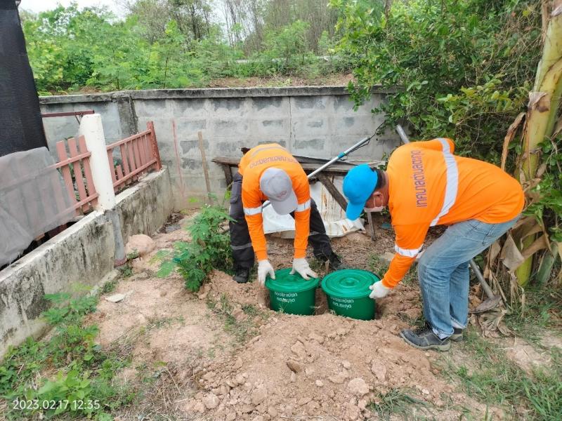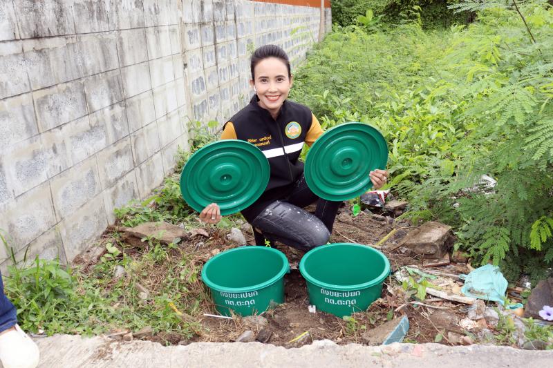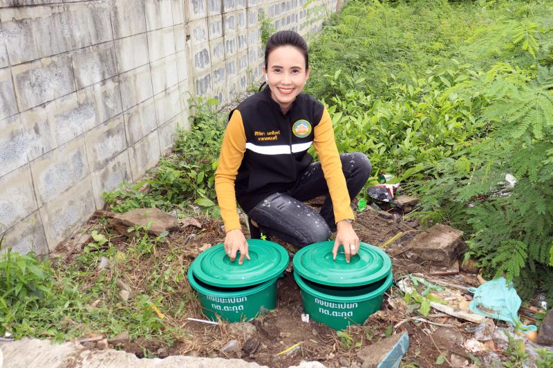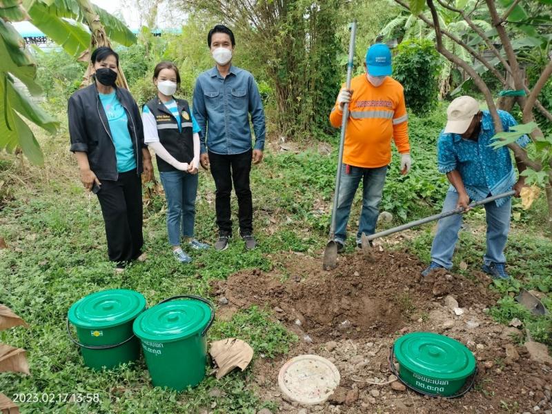 การฝังถังขยะอินทรีย์ (ถังขยะเปียกในครัวเรือน) ตามโครงการลดและคัดแยกขยะมูลฝอยจากต้นทาง ตามหลักการ 3Rs (Reduce,Reuse,Recycle)