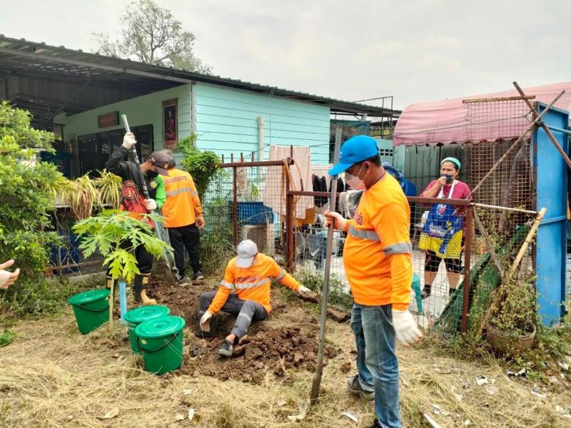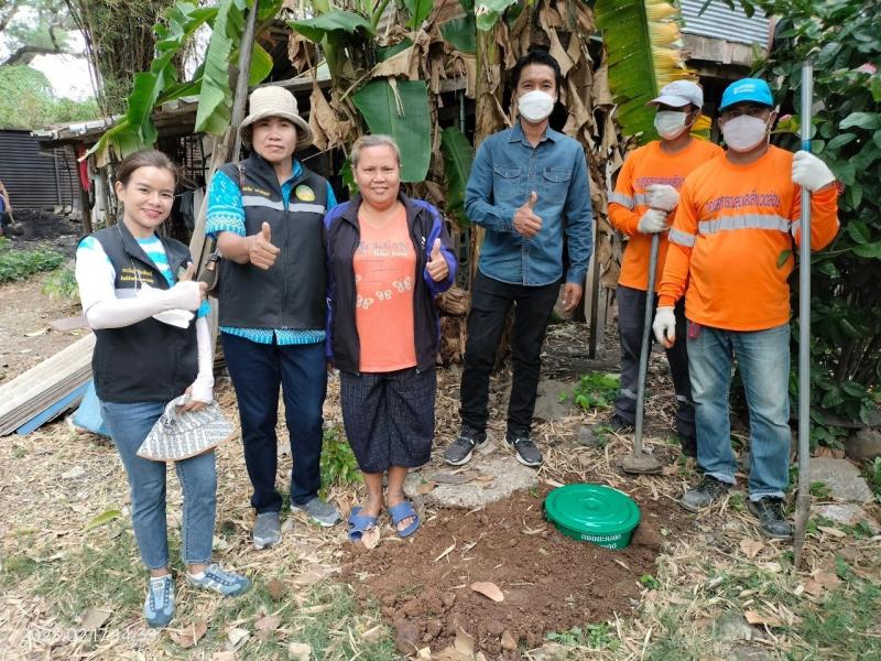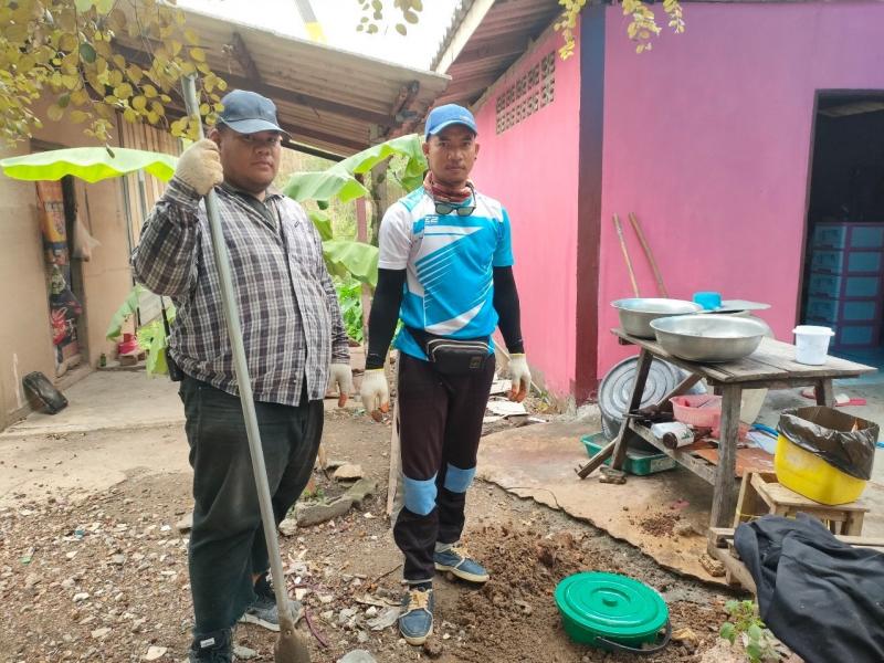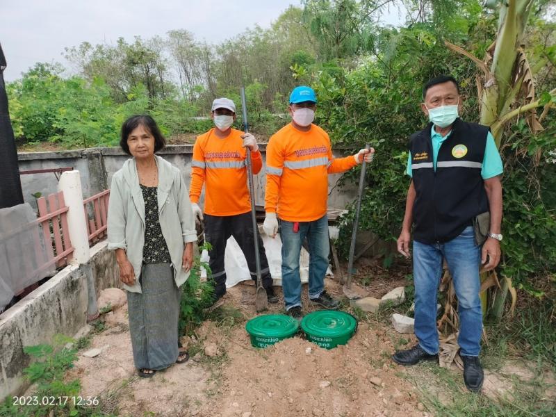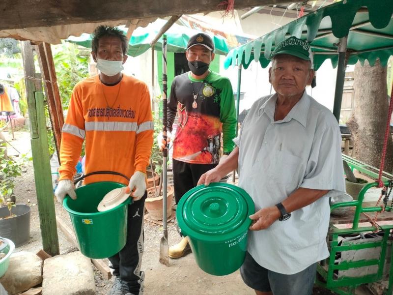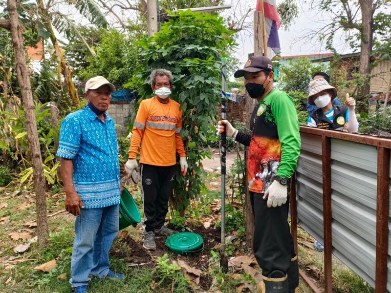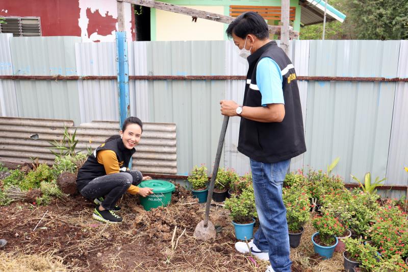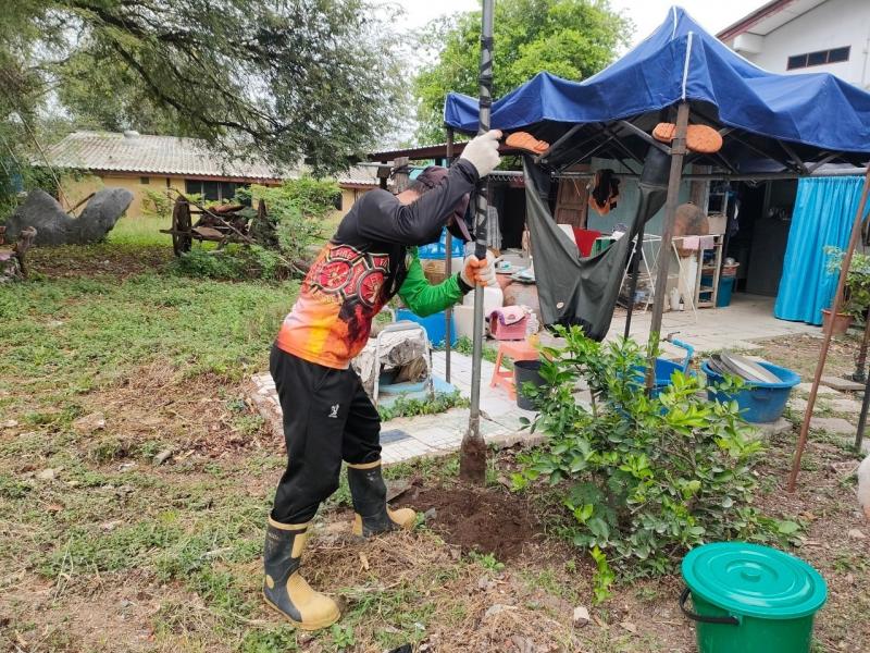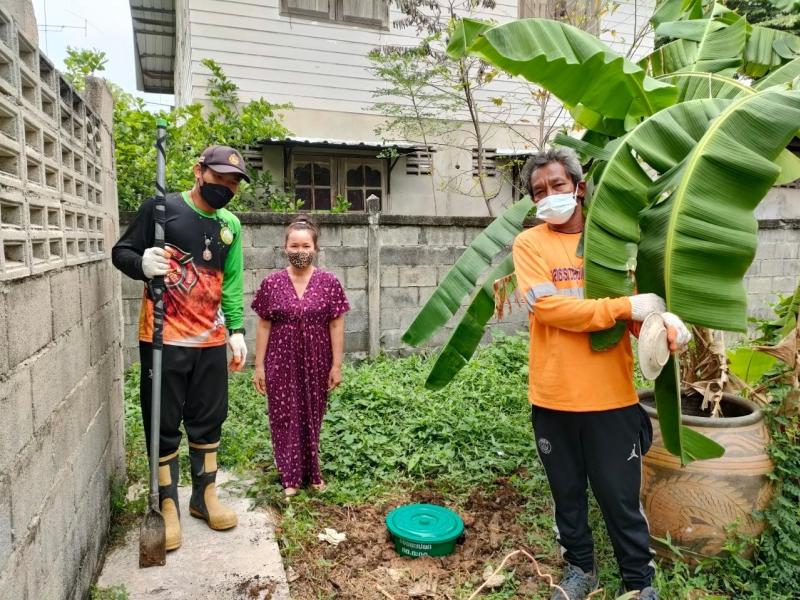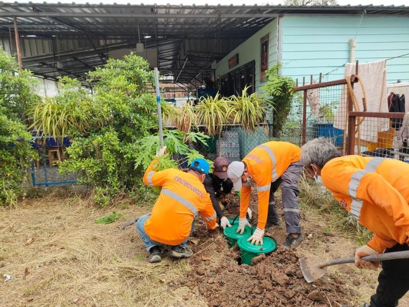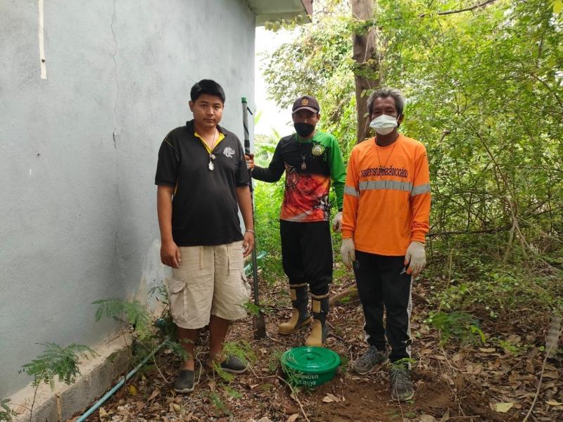 การฝังถังขยะอินทรีย์ (ถังขยะเปียกในครัวเรือน) ตามโครงการลดและคัดแยกขยะมูลฝอยจากต้นทาง ตามหลักการ 3Rs (Reduce,Reuse,Recycle)