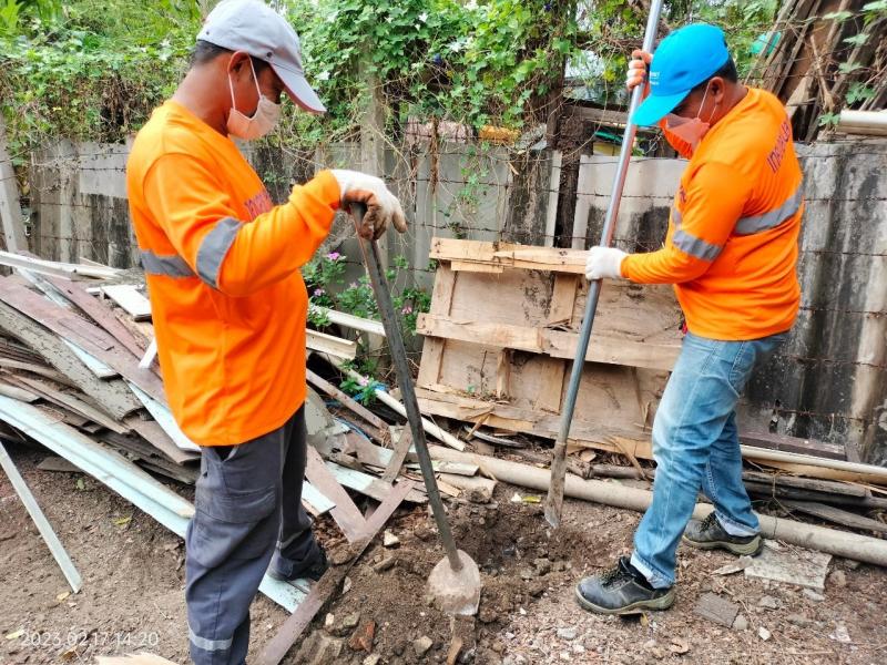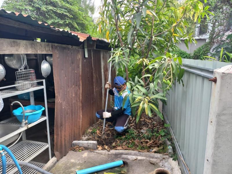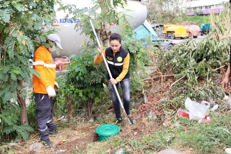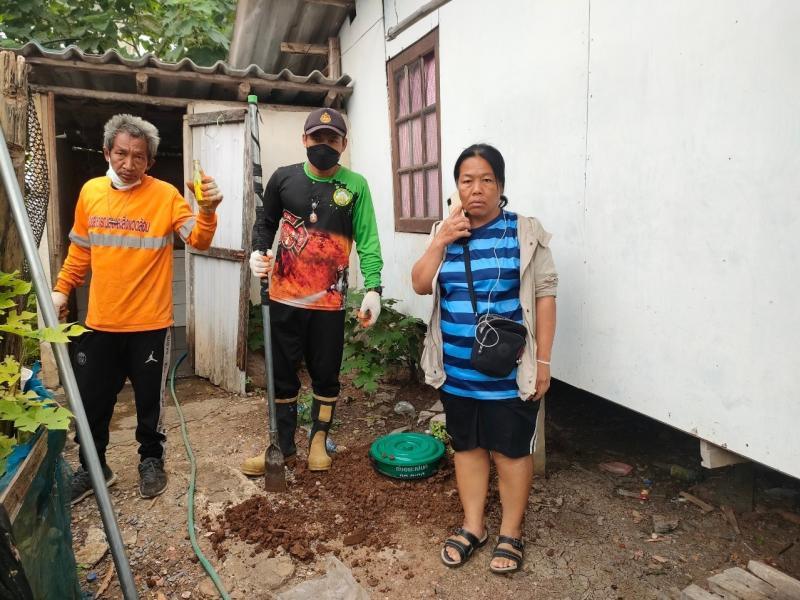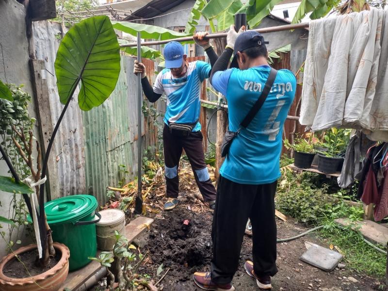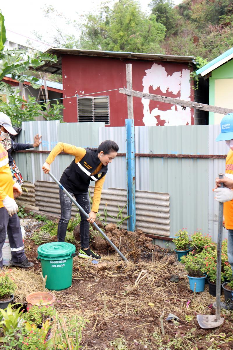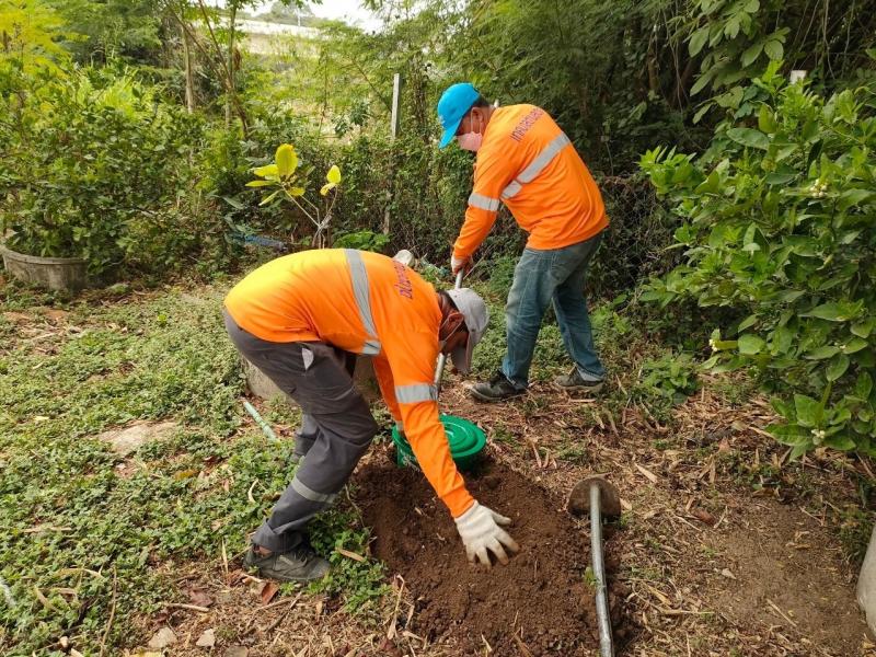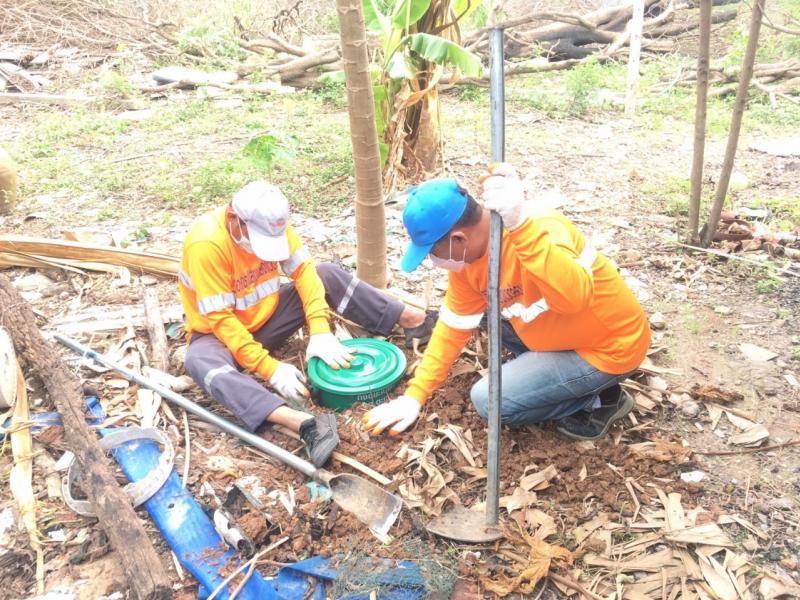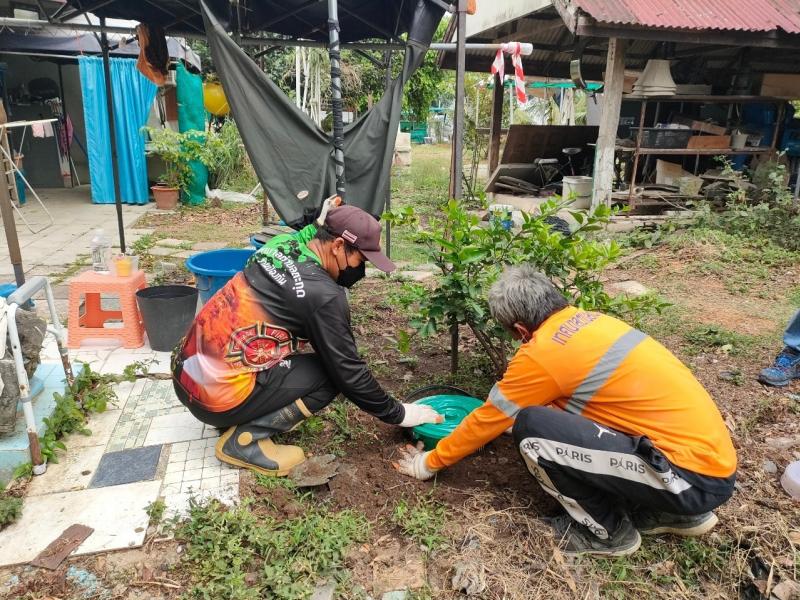 การฝังถังขยะอินทรีย์ (ถังขยะเปียกในครัวเรือน) ตามโครงการลดและคัดแยกขยะมูลฝอยจากต้นทาง ตามหลักการ 3Rs (Reduce,Reuse,Recycle)
