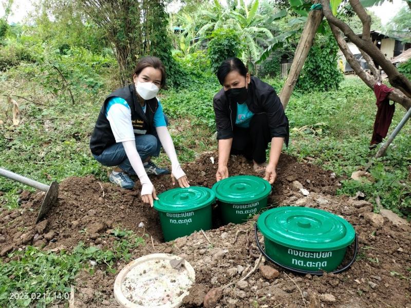 กองสาธารณสุขและสิ่งแวดล้อม ดำเนินการฝังถังขยะอินทรีย์ (ถังขยะเปียกในครัวเรือน) ตามโครงการลดและคัดแยกขยะมูลฝอยจากต้นทาง ตามหลักการ 3Rs (Reduce,Reuse,Recycle) (กิจกรรม “ถังขยะเปียกลดโลกร้อน”) ประจำปีงบประมาณ 2566 เพื่อลดปริมาณขยะอินทรีย์ , ก๊าซเรือนกระจกและการดำเนินงานด้านการเปลี่ยนแปลงสภาพภูมิอากาศของประเทศ ตามนโยบายของรัฐบาล ซึ่ง นางสาวสิริกัลยา เนตรอินทร์ นายกเทศมนตรีตำบลตะกุด ได้สนับสนุนและรณรงค์ให้แก่ประชาชนในพื้นที่ตำบลตะกุด ได้ดำเนินการตามนโยบายการจัดทำถังขยะเปียก ลดโลกร้อน ให้ครบทุกหลังคาเรือน และวันนี้ ได้ดำเนินการลงพื้นที่