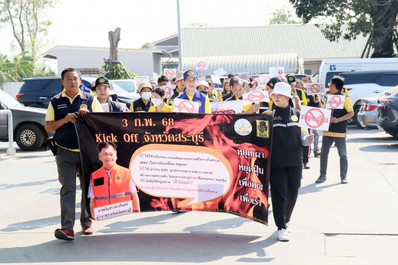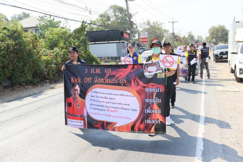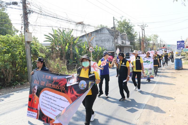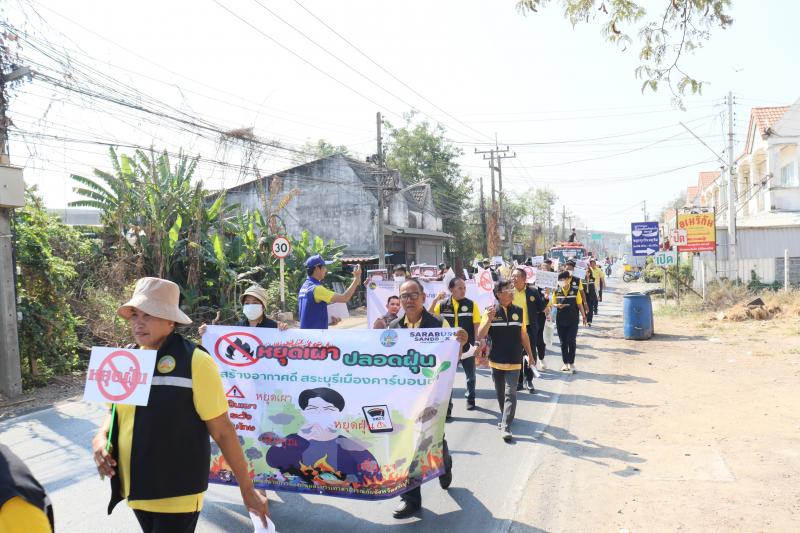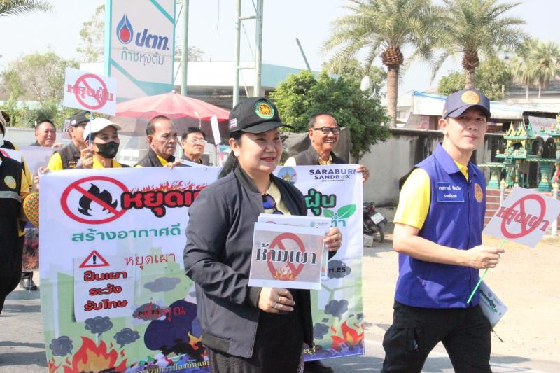 รายละเอียด : วันนี้ เวลา 10.00 น. นายอรรถการณ์ จิตถวิล นายอำเภอเมืองสระบุรี พร้อมด้วย นางสาวสิริกัลยา เนตรอินทร์ นายกเทศมนตรีตำบลตะกุด นางสาวนันณัฐฏ์ ฮวดจึง ท้องถิ่นอำเภอเมืองสระบุรี หัวหน้าส่วนราชการ ข้าราชการ และพนักงานเทศบาลตำบลตะกุด ร่วมกิจกรรมรณรงค์ ส่งเสริมการตระหนักรู้ให้กับประชาชนในการห้ามเผาโดยการเคาะประตูบ้าน “ หยุดเผา หยุดฝุ่น เพื่อคุณ เพื่อเรา” เพื่อให้เกิดการรับรู้ถึงความสำคัญ ของการห้ามเผาในทุกครัวเรือน โดยมีผู้เข้าร่วมกิจกรรม 70 คน ณ บริเวณปั๊ม ปตท. เทศบาลตำบลตะกุด และบริเวณบ้านเรือนประชาชน หมู่ที่ 6