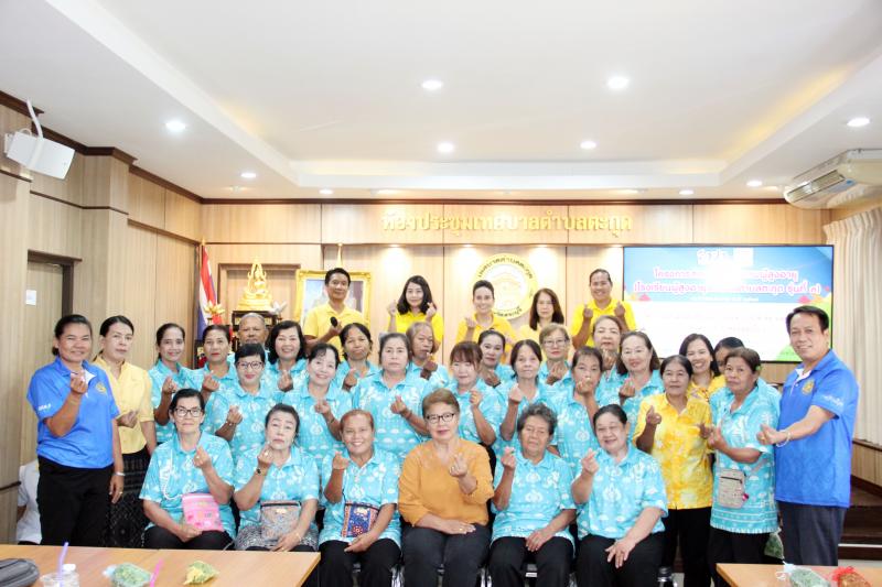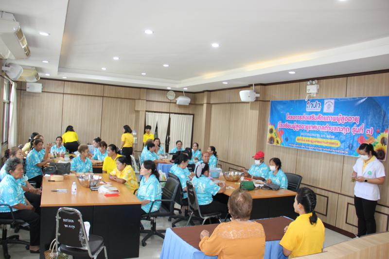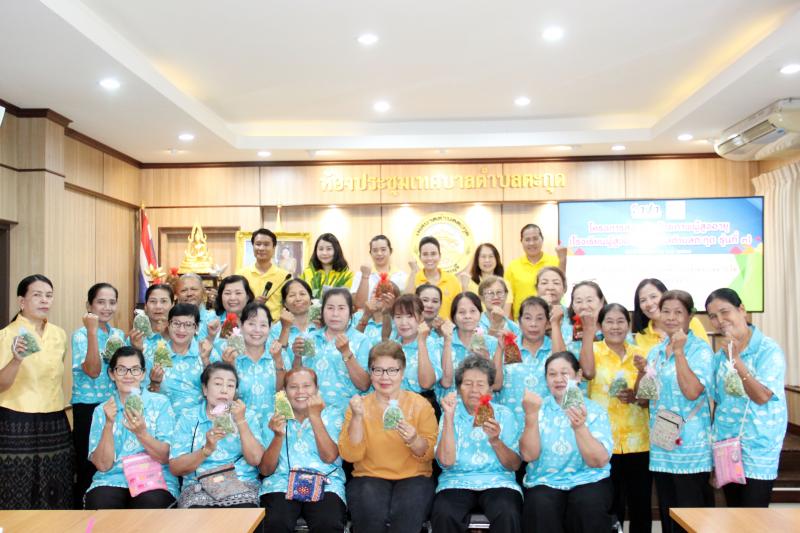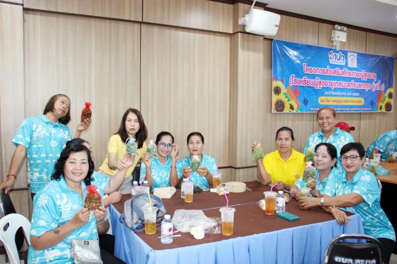 กิจกรรมการเรียนการสอนของโรงเรียนผู้สูงอายุเทศบาลตำบลตะกุด วิชาที่ 5 "วิชาการส่งเสริมอาชีพให้เหมาะสมกับวัย กิจกรรมการทำถุงหอมสมุนไพรสด"