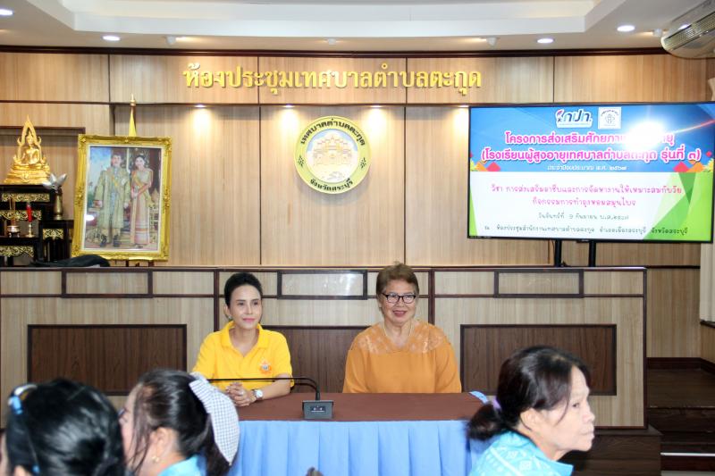 รายละเอียด : วันจันทร์ที่ 9 กันยายน 2567 เวลา 09.00 น. นางสาวสิริกัลยา เนตรอินทร์ นายกเทศมนตรีตำบลตะกุด ที่ปรึกษาชมรมผู้สูงอายุเทศบาลตำบลตะกุด เข้าร่วมกิจกรรมการเรียนการสอนของโรงเรียนผู้สูงอายุเทศบาลตำบลตะกุด วิชาที่ 5 "วิชาการส่งเสริมอาชีพให้เหมาะสมกับวัย กิจกรรมการทำถุงหอมสมุนไพรสด" โดยมีนางสาวชุตินันท์ มหาวัง แพทย์แผนไทยชำนาญการ จากโรงพยาบาลสระบุรี เป็นวิทยากรในการบรรยายให้ความรู้และฝึกปฏิบัติให้กับนักเรียนผู้สูงอายุ ณ ห้องประชุม สำนักงานเทศบาลตำบลตะกุด ชั้น 2