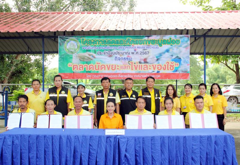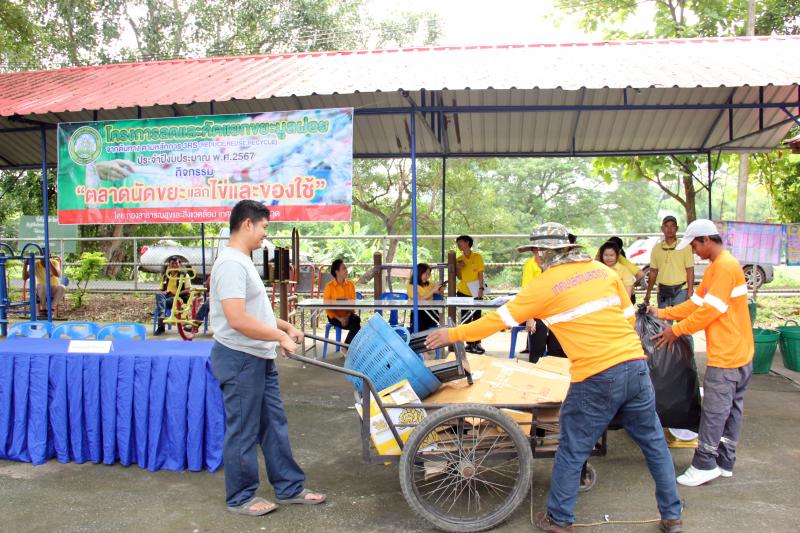 กิจกรรม ตลาดนัดขยะ “แลกไข่และของใช้” ตามโครงการลดและคัดแยกขยะจากต้นทาง ตามหลักการ 3RS (Reduse Reuse Recycle) ประจำปีงบประมาณ 2567 ณ วัดตะกุด หมู่ที่ 2