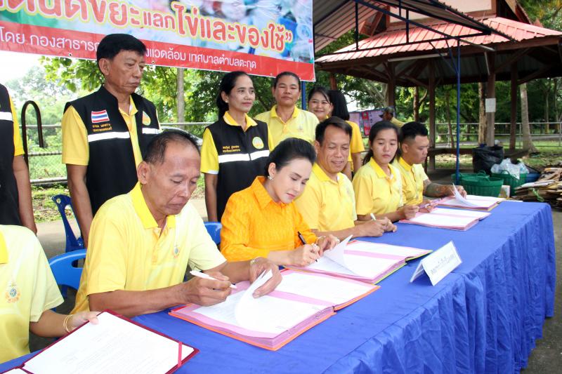 1. มีการลงนามบันทึกข้อตกลงร่วมกัน (MOU) เพื่อแสดงถึงเจตนารมณ์ร่วมกันระหว่าง เทศบาลตำบลตะกุด อำเภอเมืองสระบุรี จังหวัดสระบุรี กับ ผู้นำชุมชนทุกหมู่บ้าน ว่าทุกฝ่ายได้ตกลงเพื่อให้เกิดความร่วมมือที่จะขยายผลโครงการลดและคัดแยกขยะมูลฝอยจากต้นทาง ตามหลักการ 3Rs (Reduce,Reuse,Recycle) ในรูปแบบการขยายผลสู่หมู่บ้านที่มีความประสงค์จะเข้ามามีส่วนร่วมในการจัดการขยะในรูปแบบตลาดนัดขยะ