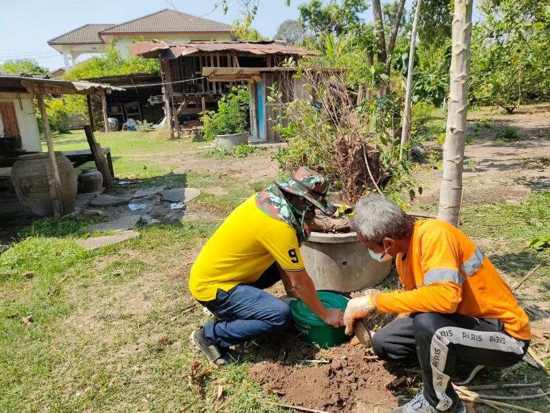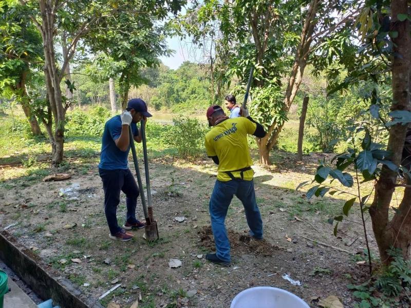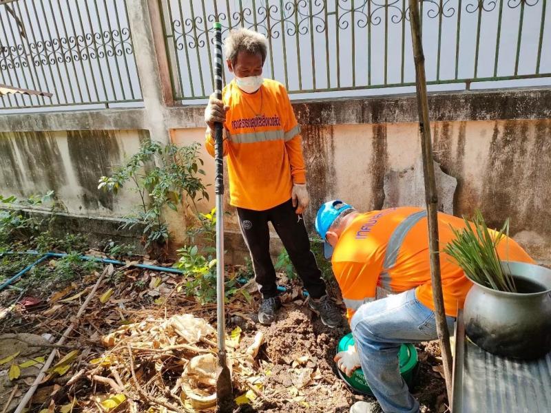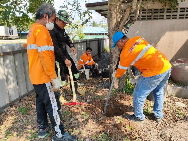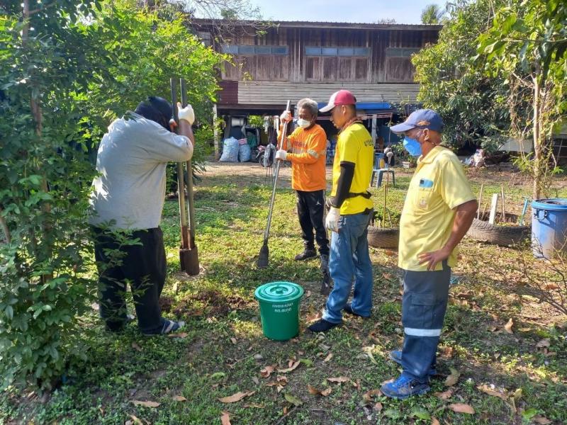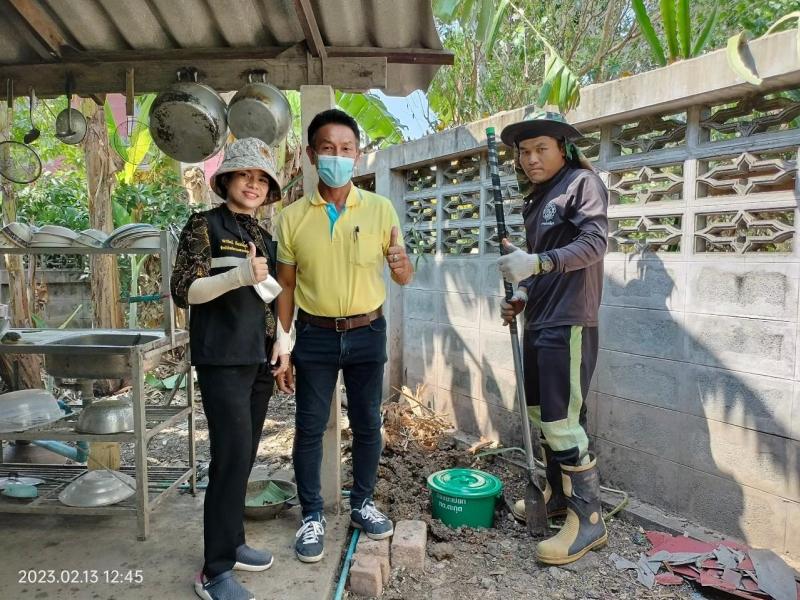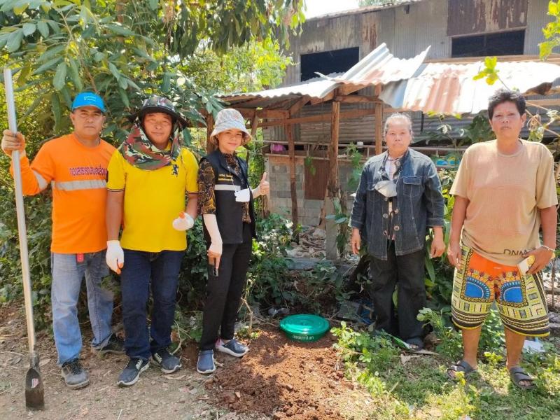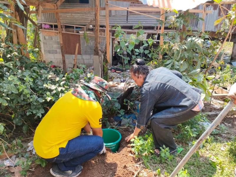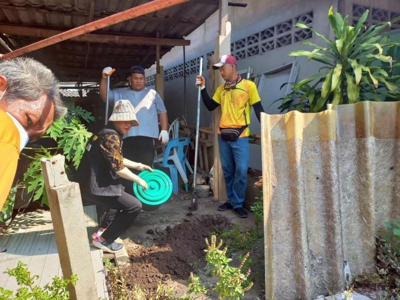 การฝังถังขยะอินทรีย์ (ถังขยะเปียกในครัวเรือน) ตามโครงการลดและคัดแยกขยะมูลฝอยจากต้นทาง ตามหลักการ 3Rs ลงพื้นที่ หมู่ที่ 1 และหมู่ที่ 2