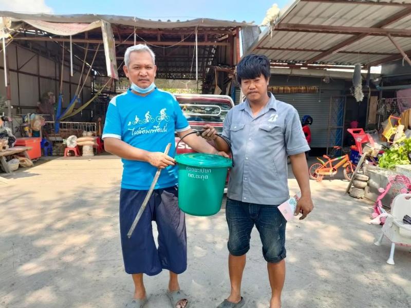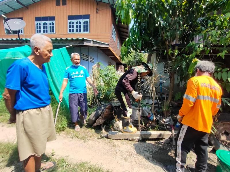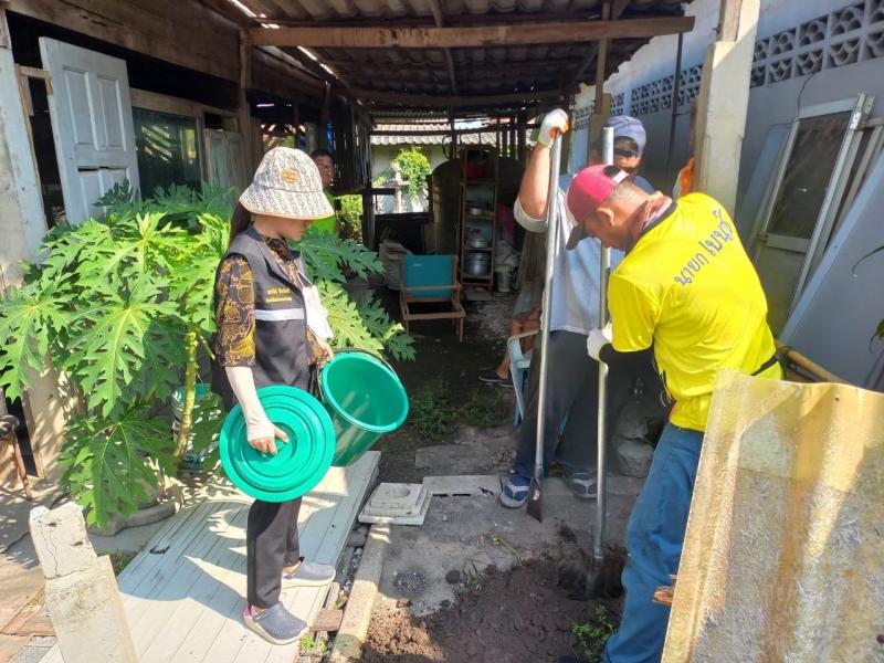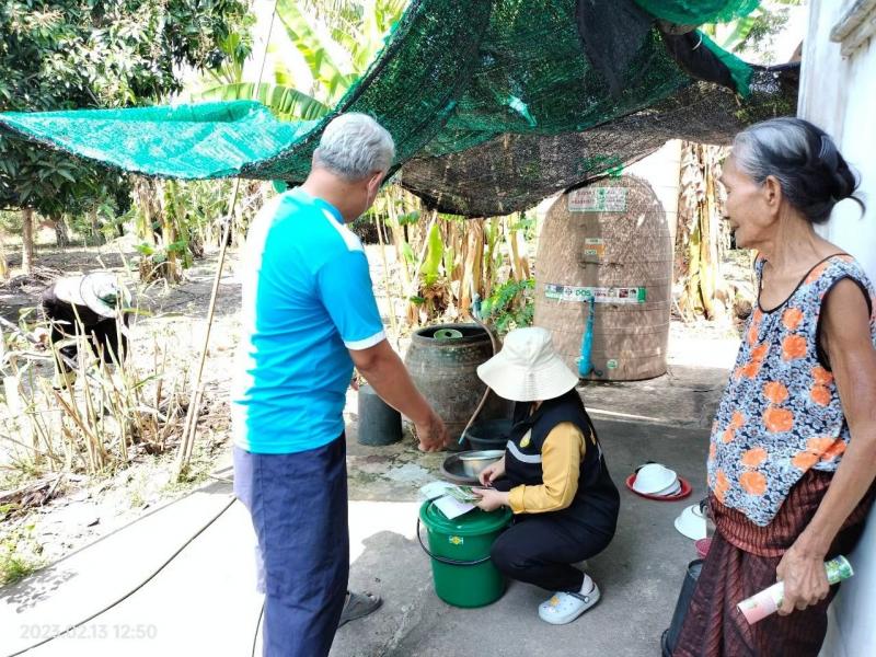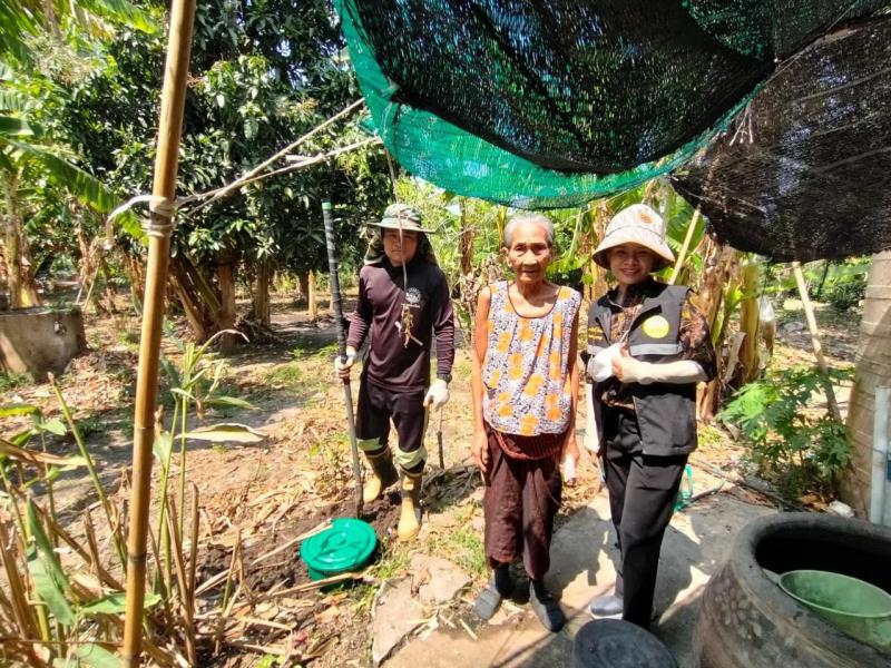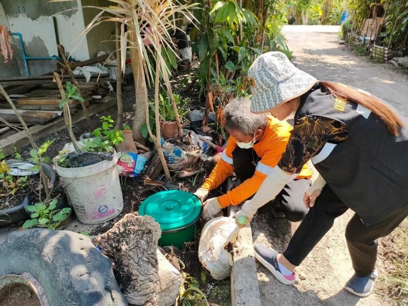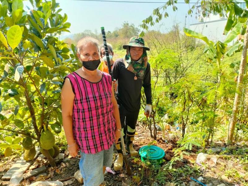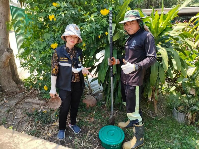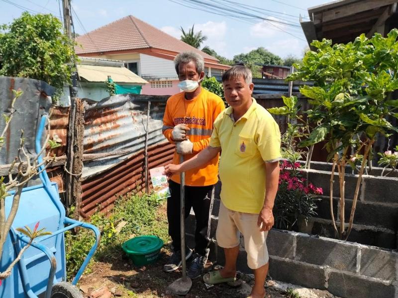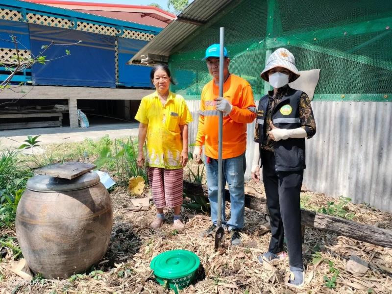 การฝังถังขยะอินทรีย์ (ถังขยะเปียกในครัวเรือน) ตามโครงการลดและคัดแยกขยะมูลฝอยจากต้นทาง ตามหลักการ 3Rs ลงพื้นที่ หมู่ที่ 1 และหมู่ที่ 2