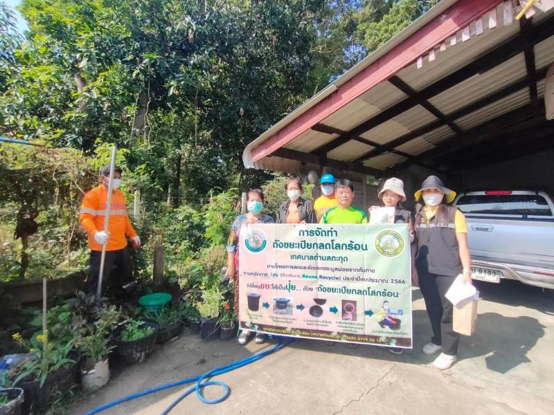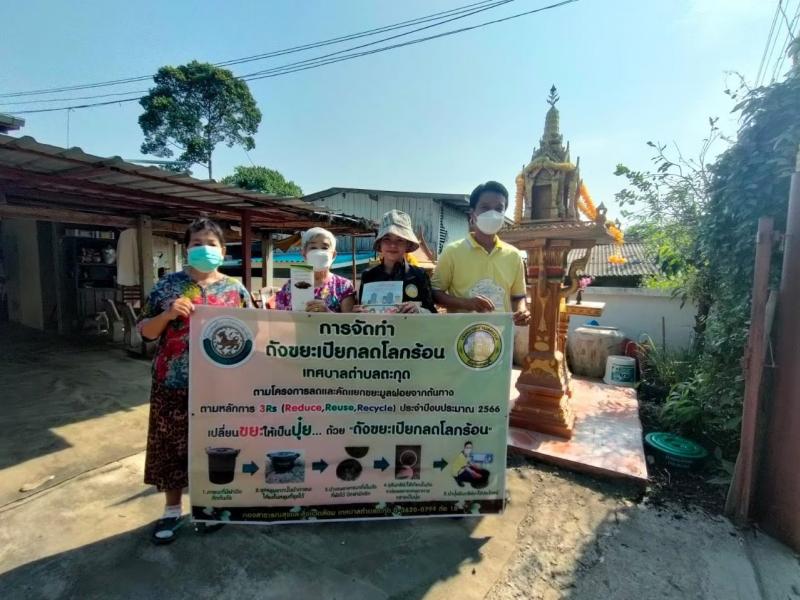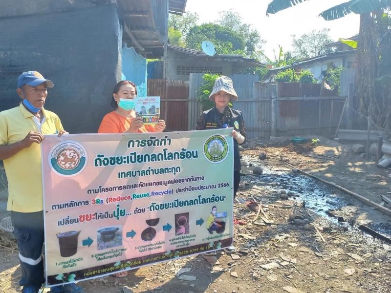กองสาธารณสุขและสิ่งแวดล้อม ดำเนินการฝังถังขยะอินทรีย์ (ถังขยะเปียกในครัวเรือน) ตามโครงการลดและคัดแยกขยะมูลฝอยจากต้นทาง ตามหลักการ 3Rs (Reduce,Reuse,Recycle) (กิจกรรม “ถังขยะเปียกลดโลกร้อน”) ประจำปีงบประมาณ 2566 เพื่อลดปริมาณขยะอินทรีย์ , ก๊าซเรือนกระจกและการดำเนินงานด้านการเปลี่ยนแปลงสภาพภูมิอากาศของประเทศ ตามนโยบายของรัฐบาล ซึ่ง นางสาวสิริกัลยา เนตรอินทร์ นายกเทศมนตรีตำบลตะกุด ได้สนับสนุนและรณรงค์ให้แก่ประชาชนในพื้นที่ตำบลตะกุด ได้ดำเนินการตามนโยบายการจัดทำถังขยะเปียก ลดโลกร้อน ให้ครบทุกหลังคาเรือน และวันนี้ ได้ดำเนินการลงพื้นที่ หมู่ที่ 1 และหมู่ที่ 2 โดยมี นายสุภรณ์ สารีรอด สมาชิกสภาเทศบาลเขต 1 ผู้ช่วยผู้ใหญ่บ้านหมู่ที่ 2 อสม.หมู่ที่ 1 และ 2 ออกร่วมกิจกรรมในครั้งนี้