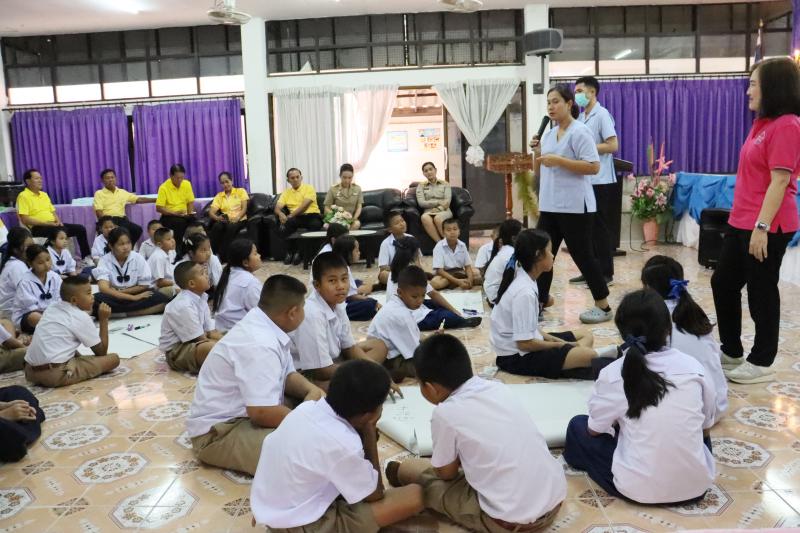 รายละเอียด : วันจันทร์ที่ 21 กรกฎาคม 2568 นางสาวสิริกัลยา เนตรอินทร์ นายกเทศมนตรีตำบลตะกุด เป็นประธานในพิธีเปิดโครงการตะกุดปลอดภัย ห่างไกลจากยาเสพติด โรคติดต่อทางเพศสัมพันธ์และโรคเอดส์ ประจำปีงบประมาณ 2568 โดยมีคณะผู้บริหารฯ หัวหน้าส่วนราชการ ผู้อำนวยการโรงพยาบาลส่งเสริมสุขภาพตำบลตะกุด ผู้อำนวยการโรงเรียนวัดบ้านกล้วย ครูและนักเรียนโรงเรียนวัดบ้านกล้วย ผู้นำชุมชน และเจ้าหน้าที่เทศบาลตำบลตะกุด โดยมีการจัดกิจกรรมการอบรมให้ความรู้แก่ครูและนักเรียน ในเรื่องการป้องกันตนเองจากยาเสพติด โรคติดต่อทางเพศสัมพันธ์ และโรคเอดส์ และแบ่งกลุ่มการฝึกปฏิบัติ ณ ห้องประชุมโรงเรียนวัดบ้านกล้วย โดยได้รับเกียรติจากทีมวิทยากรโรงพยาบาลส่งเสริมสุขภาพตำบลตะกุด เป็นผู้ดำเนินการอบรมครั้งนี้