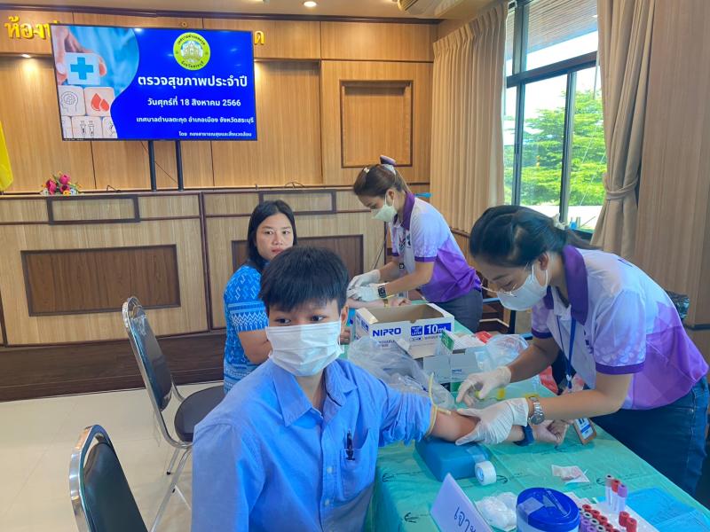 กิจกรรมตรวจสุขภาพประจำปีให้แก่ คณะผู้บริหารเทศบาลฯ สมาชิกสภาเทศบาล พนักงานเทศบาล ลูกจ้างประจำ พนักงานจ้างตามภารกิจและพนักงานจ้างทั่วไปของเทศบาลตำบลตะกุด